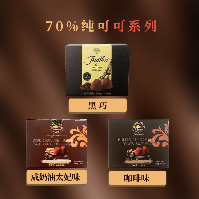 法国进口Truffles乔慕70%纯可可脂黑松露巧克力咖啡味200g礼盒装