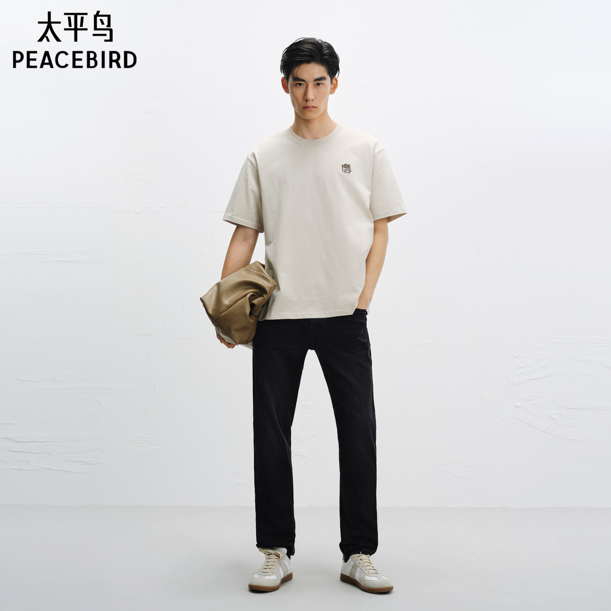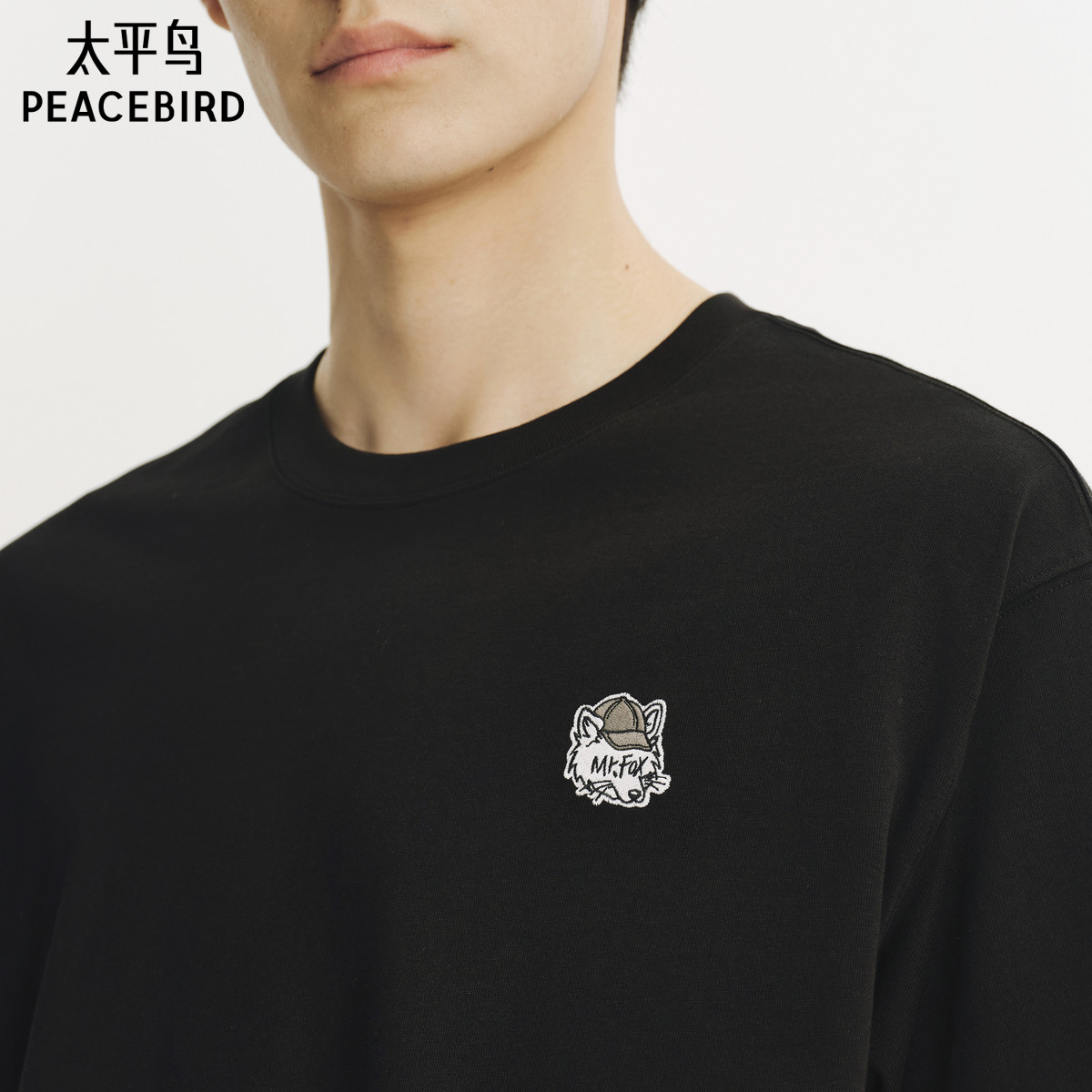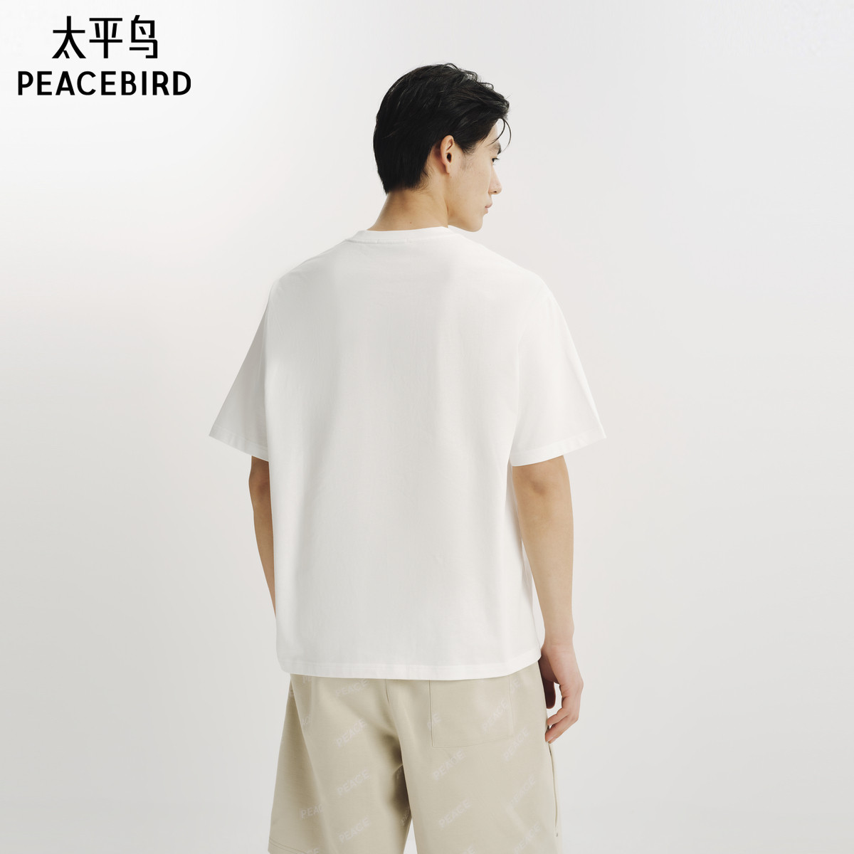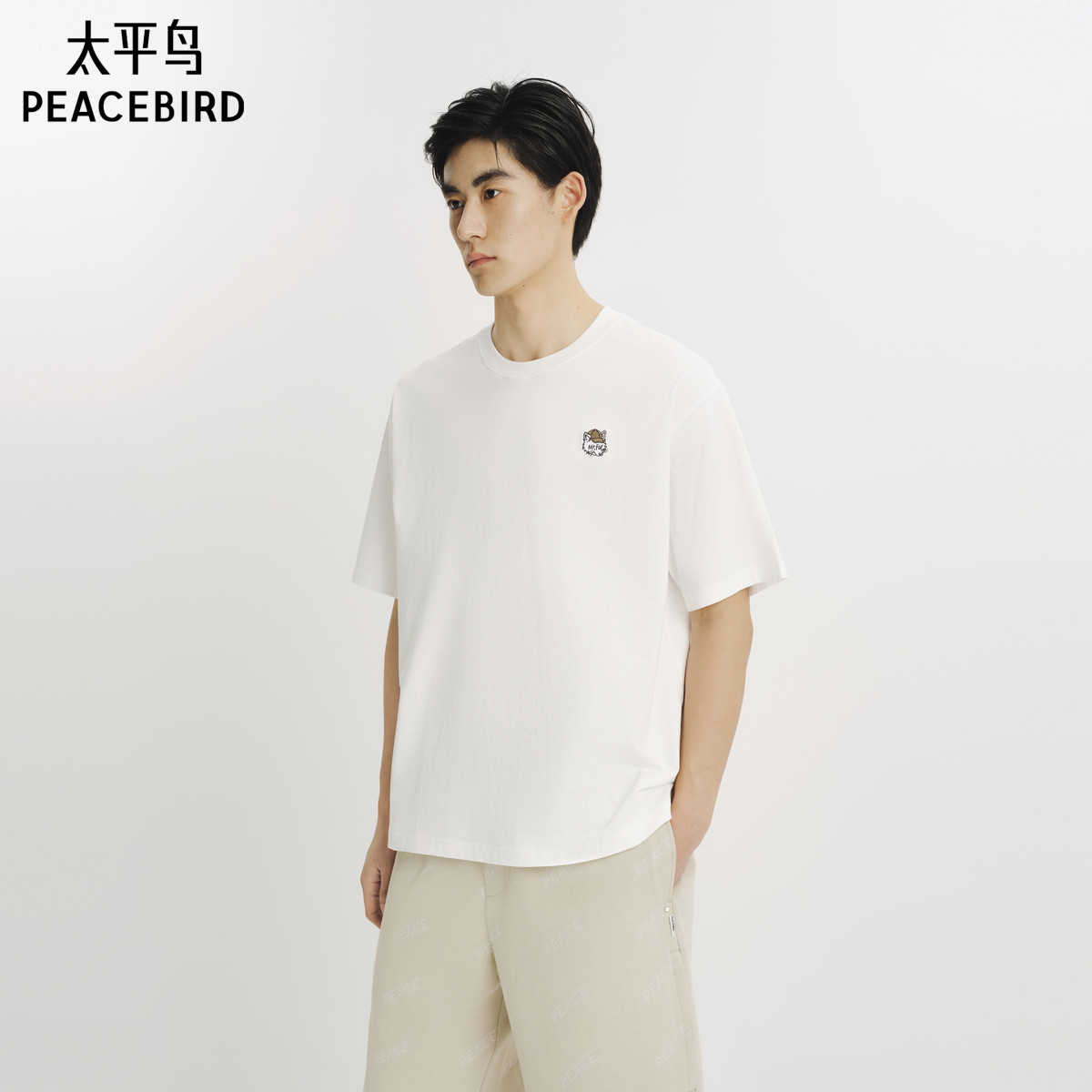 太平鸟男装 小狐狸短袖t恤男25年夏季新款纯色纯棉宽松男生体恤