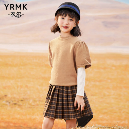 衣尔曼克韩版冬季女童假两件毛衣
