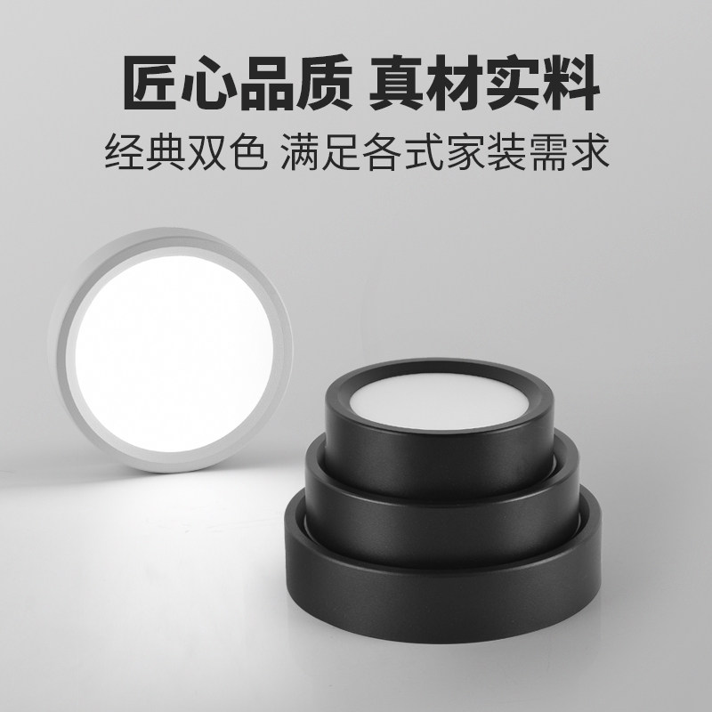 全光谱超薄明装led筒灯圆形小吸顶商场家用过道玄关免开孔无主灯