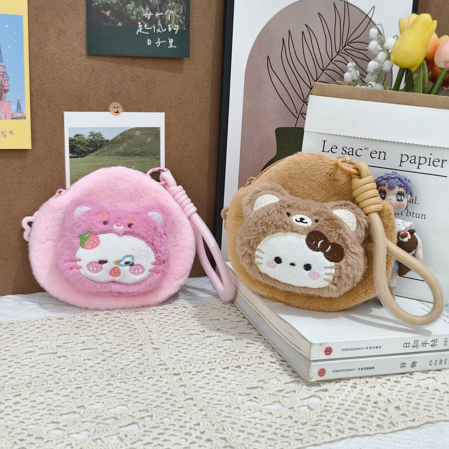 可爱卡通毛绒玩偶零钱包女2025新款小众百搭多功能卡包口红收纳包
