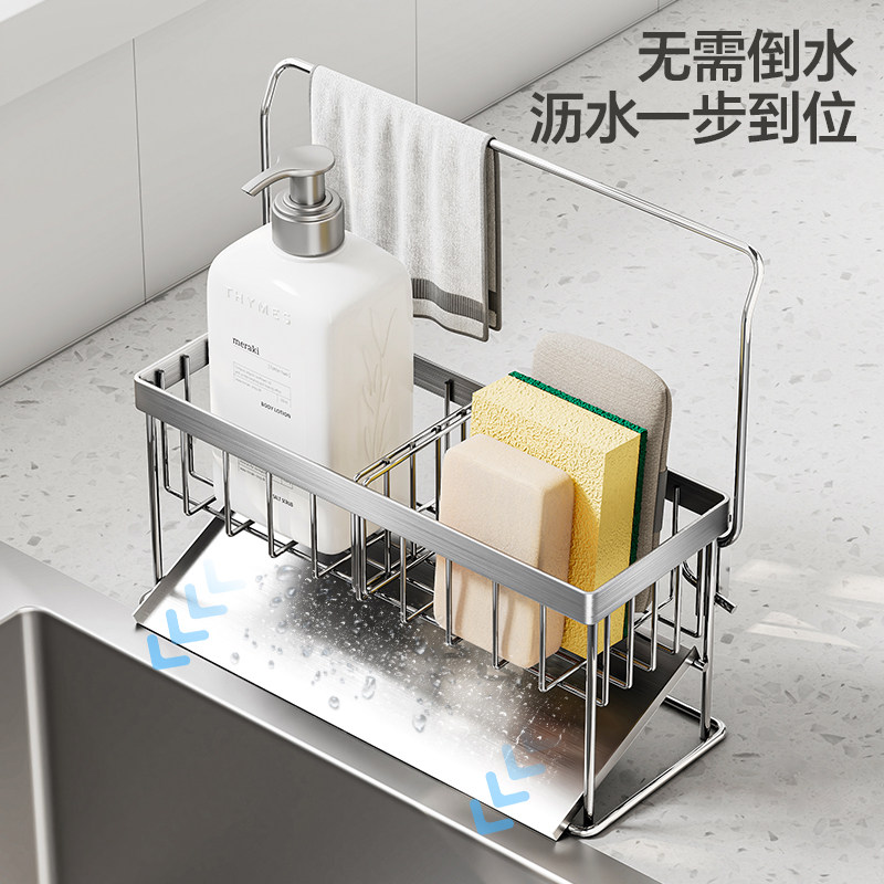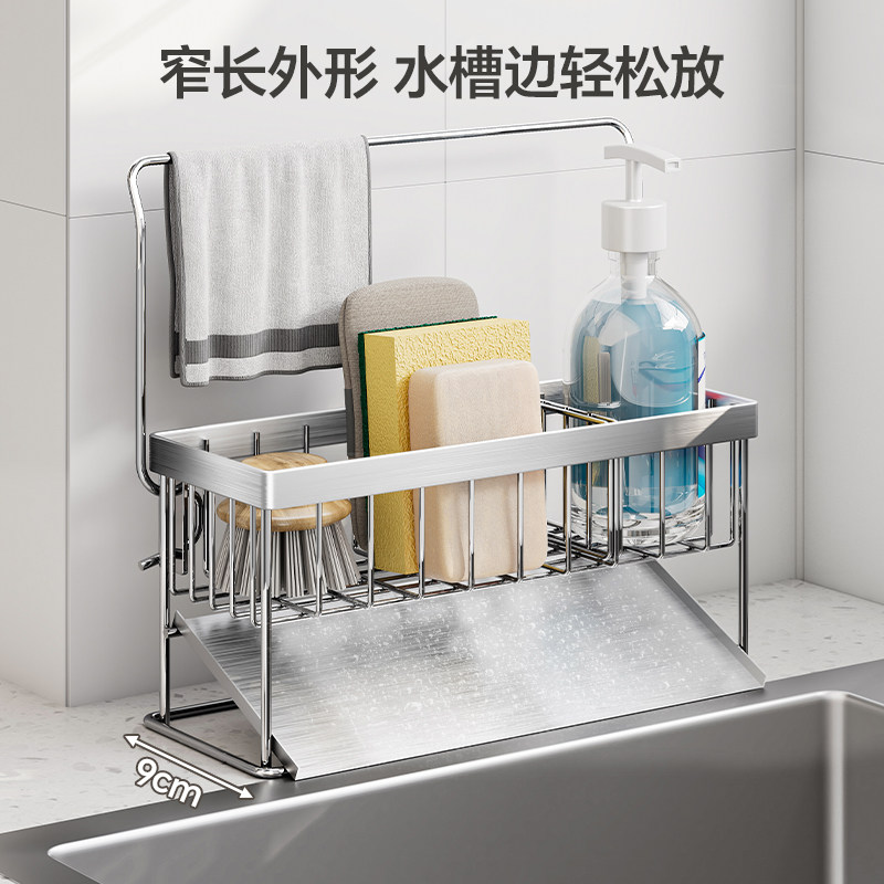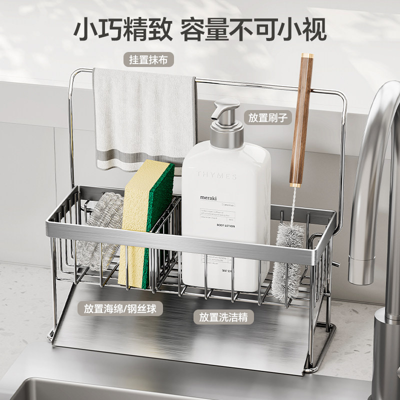 水槽置物架厨房洗碗池不锈钢海绵沥水收纳架台面抹布洗洁精置物架
