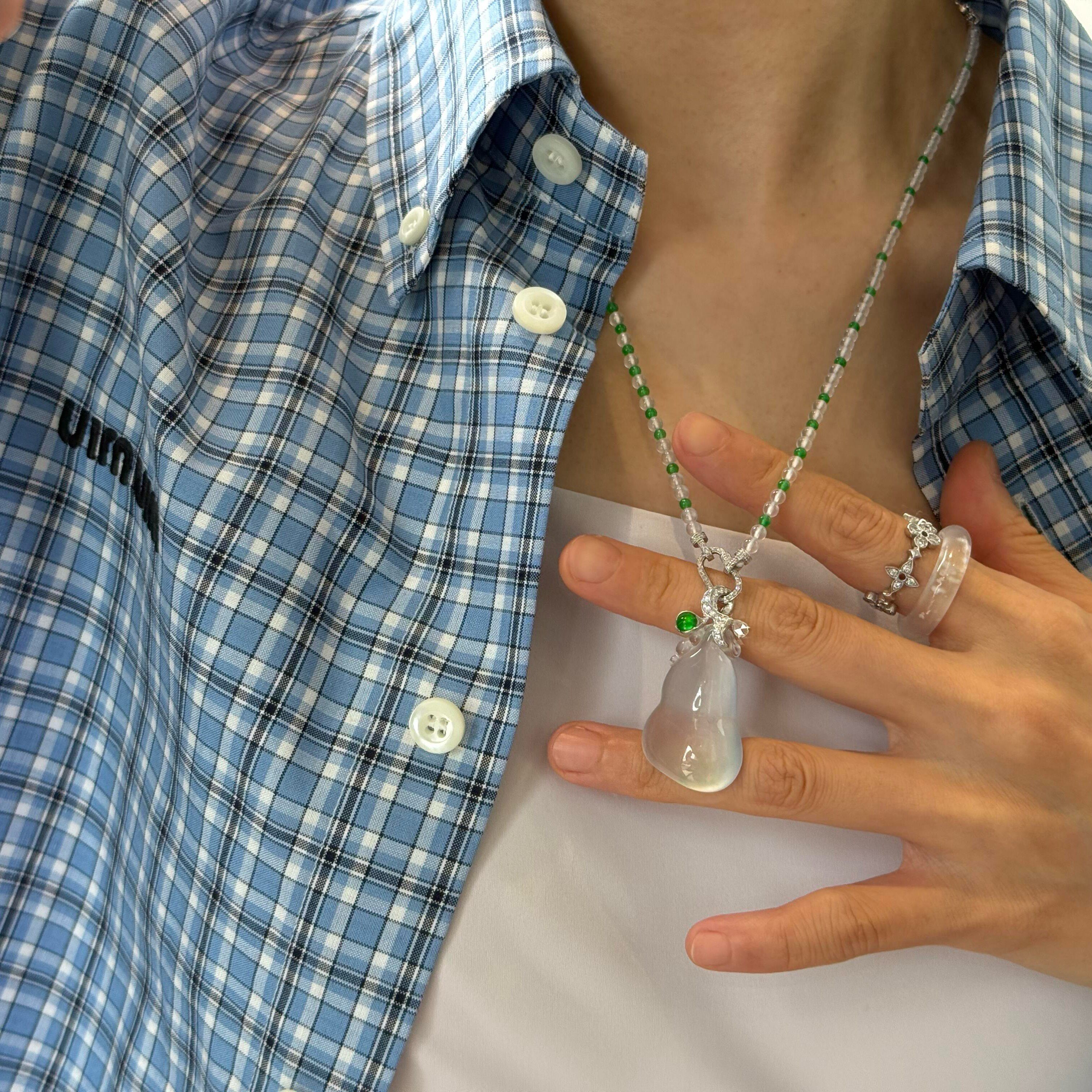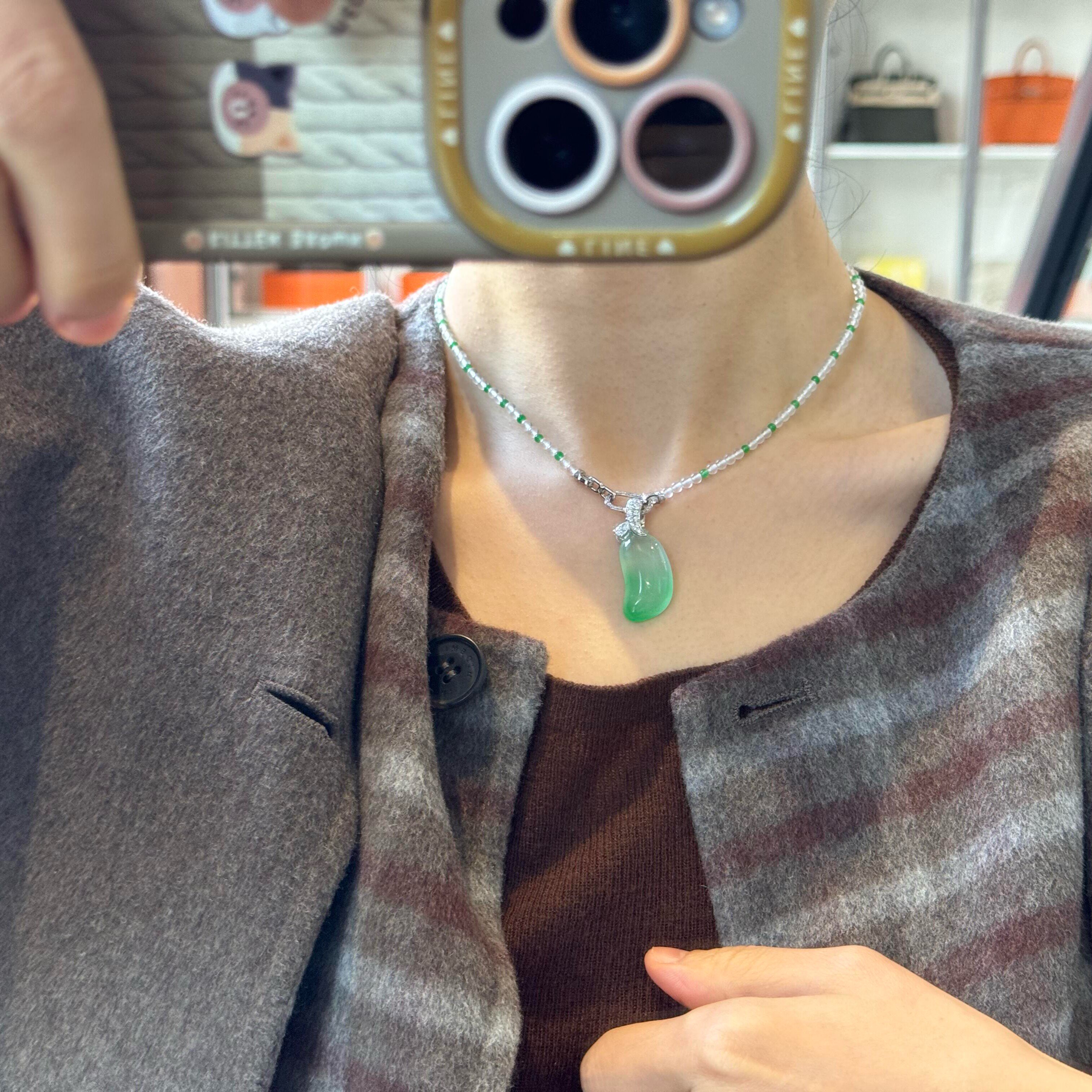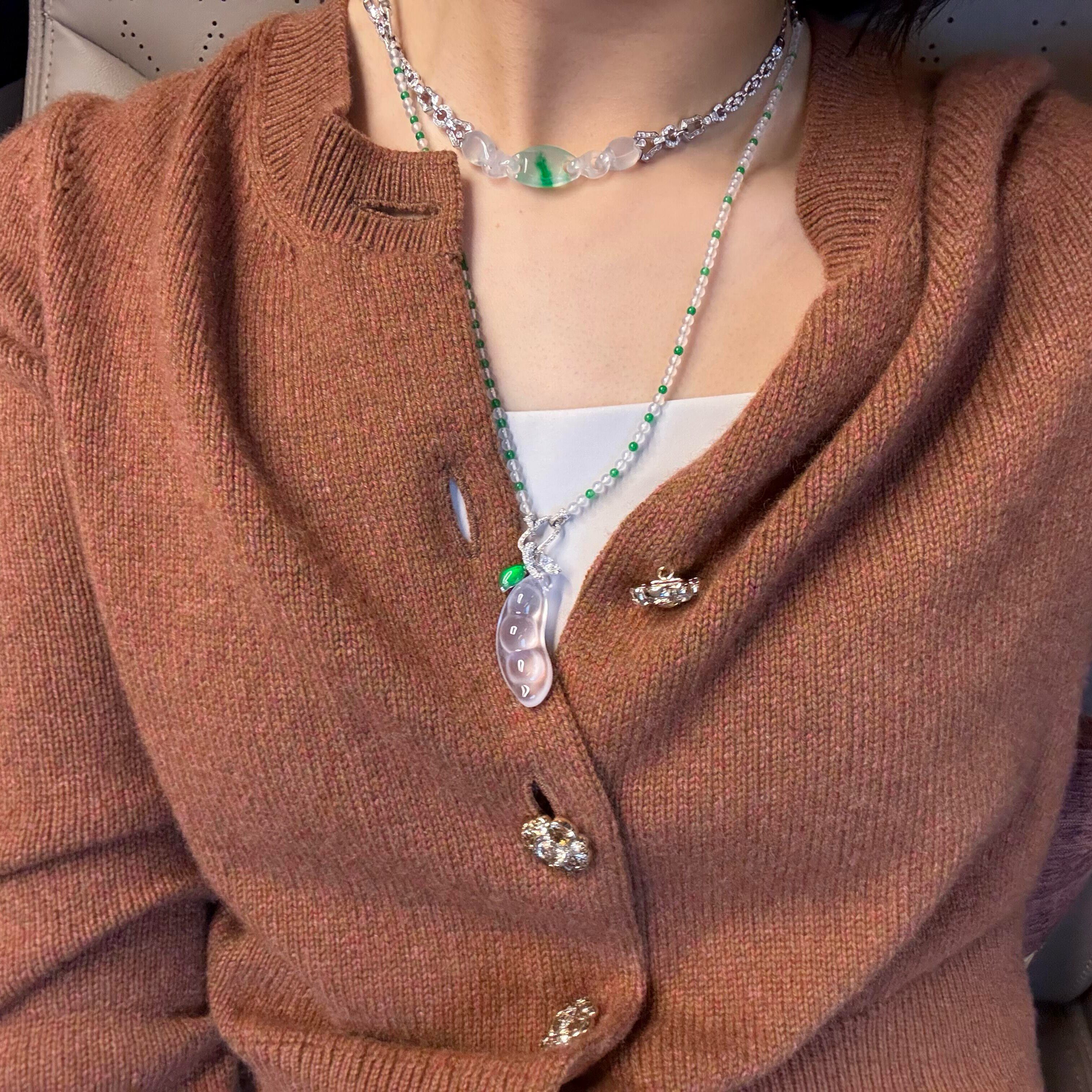 正阳绿翡翠万能链吊坠绳白冰小米珠项链女款锁骨链百搭新中式手链