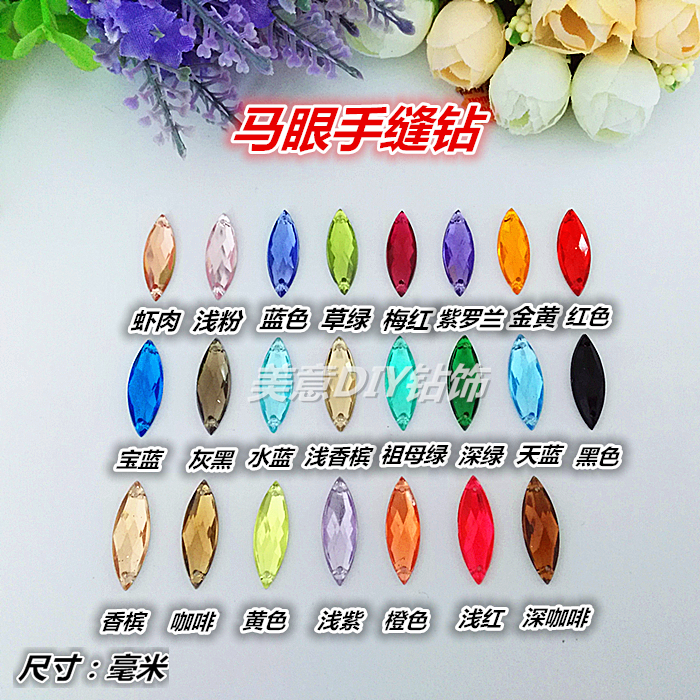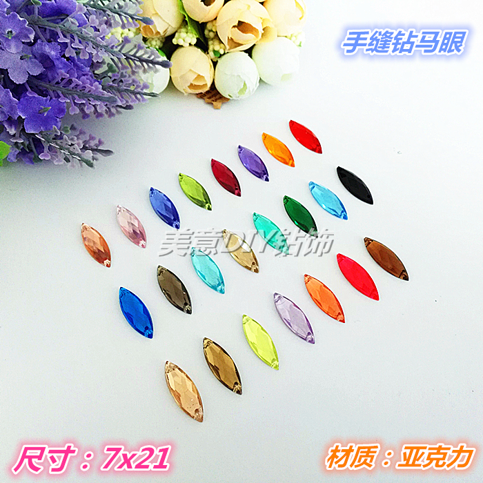 亚克力手缝钻彩钻7x21mm马眼手缝婚纱闪钻缝衣服水钻DIYT恤领口