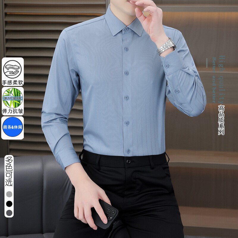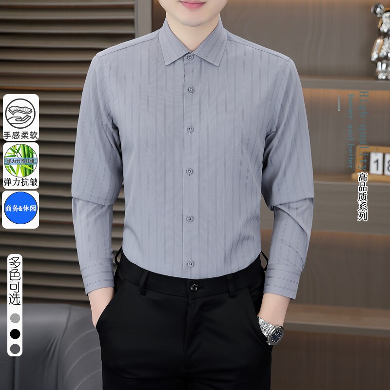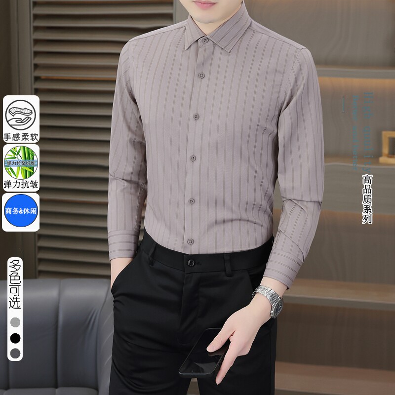 春季百搭新款条纹长袖衬衣免烫商务休闲时尚高级感潮流衬衫男装帅