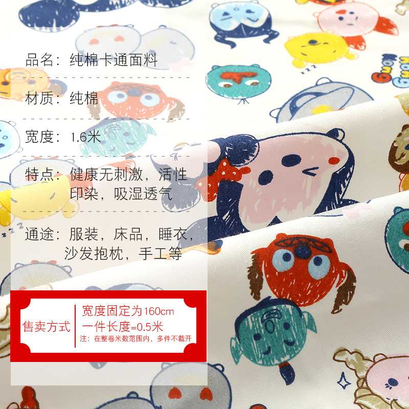纯棉卡通印花布料手工 DIY娃衣宝宝服装儿童床单被套棉布面料意赛