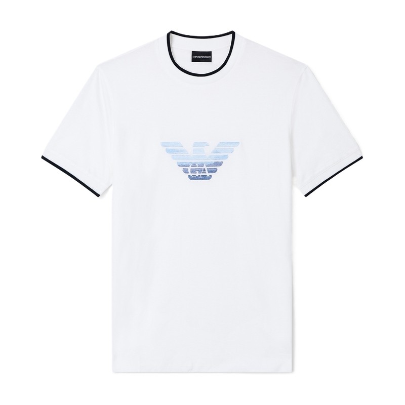 EMPORIO ARMANI/阿玛尼26年春季新款男士圆领短袖撞色刺绣T恤官方
