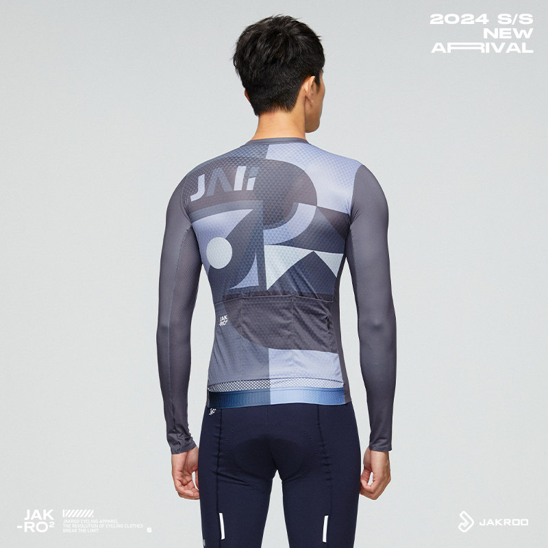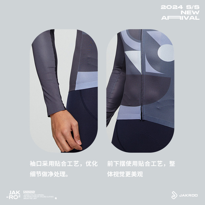 捷酷春夏新款 时极男士长袖透气修身印花舒适专业公路骑行服上衣