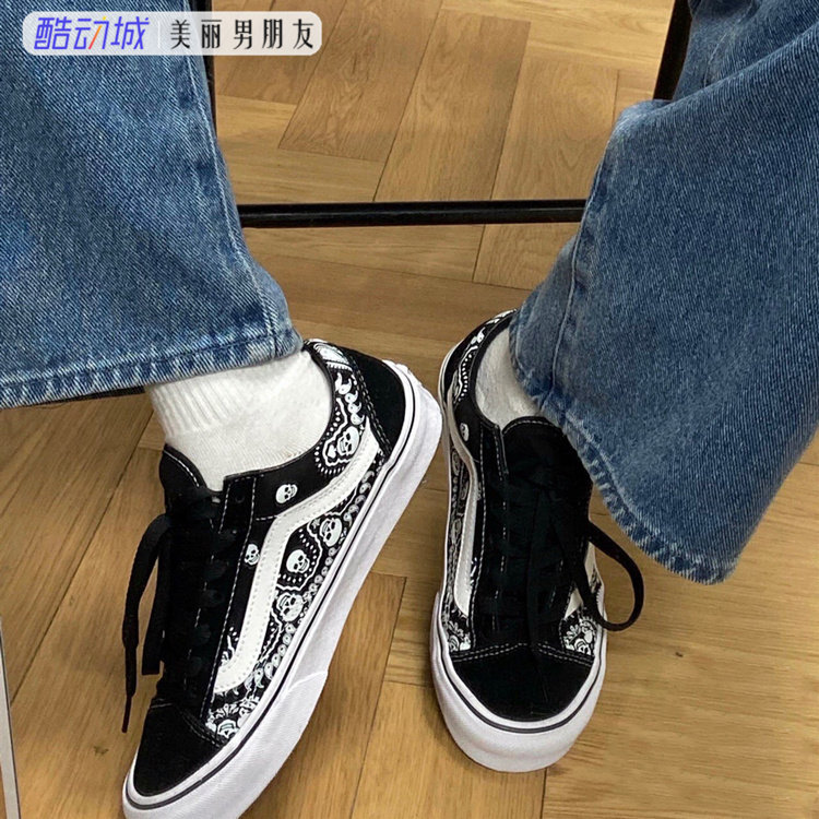 VANS Style 36黑白低帮腰果花骷髅印花休闲板鞋帆布鞋VN0A54F6D9S