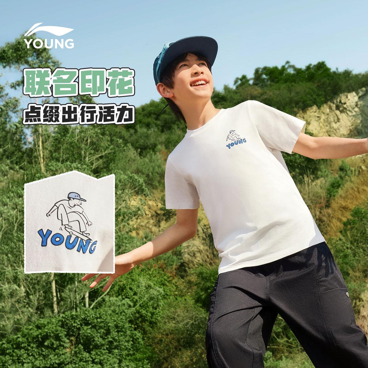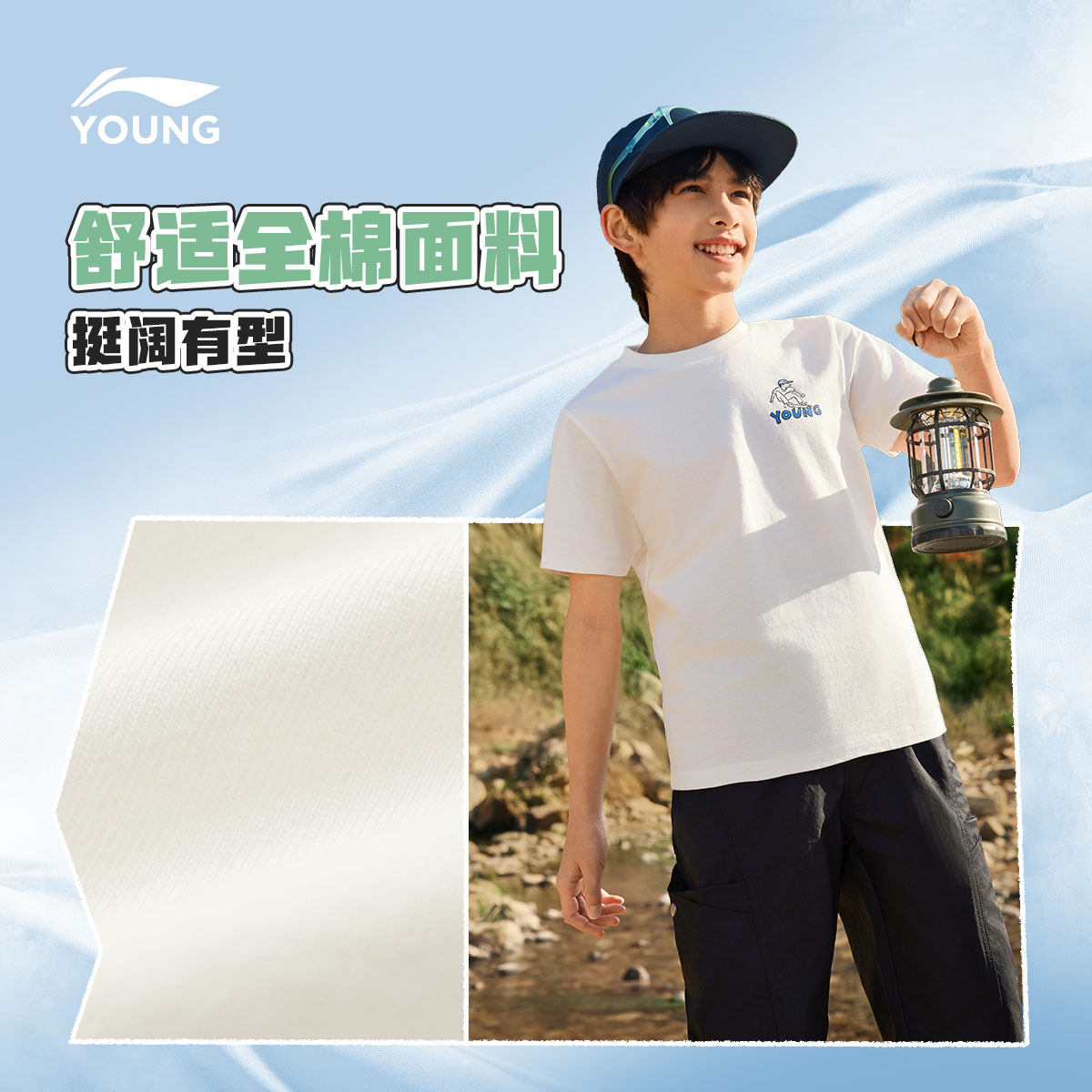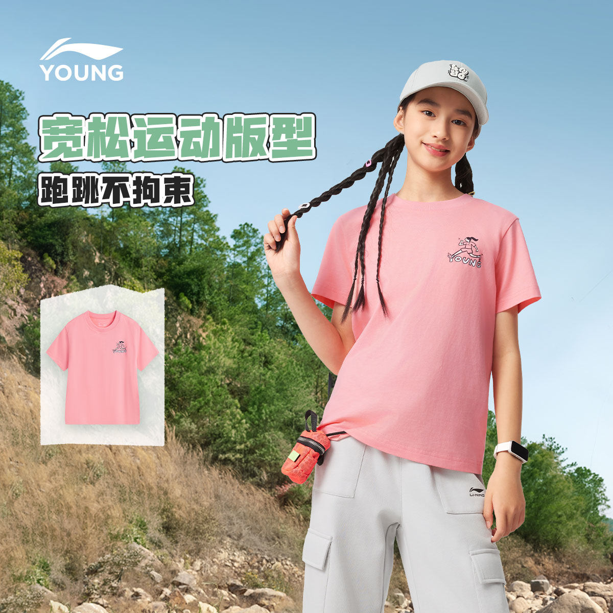 李宁儿童纯棉短袖T恤2025新款夏季男童装女中大童青少年衣服上衣