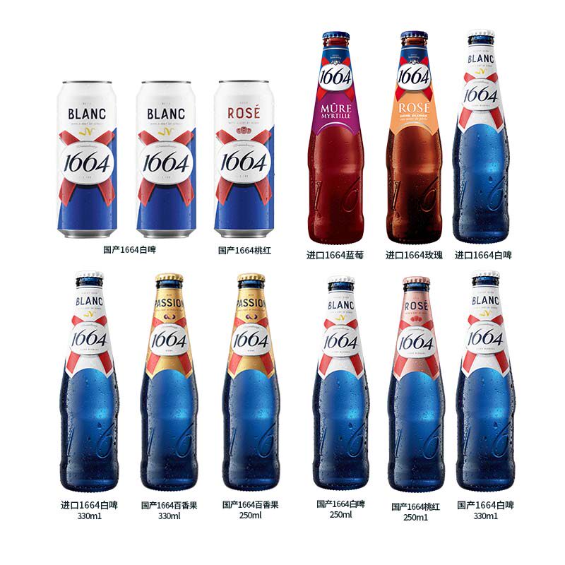 法国进口1664果味啤酒白啤蓝莓玫瑰瓶装250ml法式香味整箱囤货价