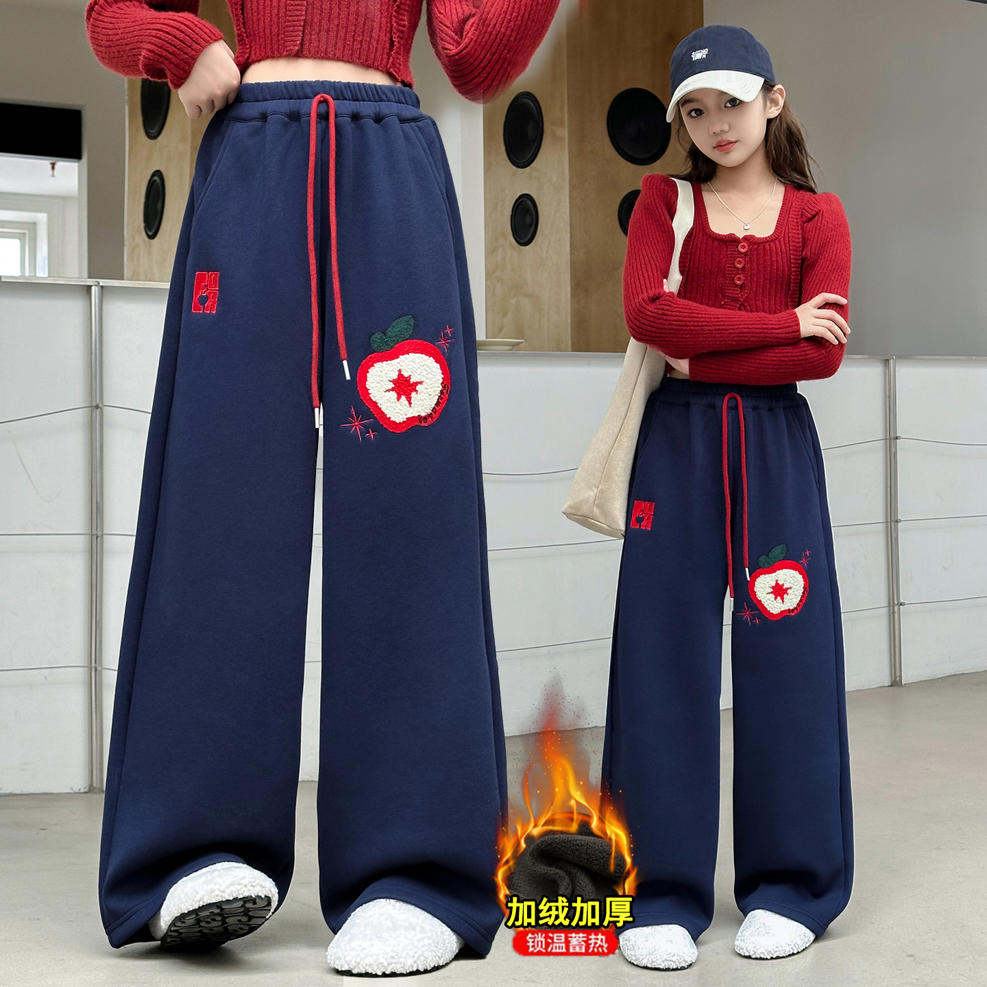 女童2025秋冬新款刺绣休闲阔腿裤学生韩版加绒加厚百搭直筒裤潮