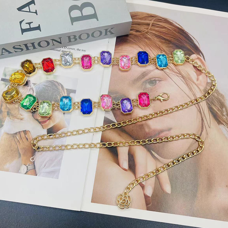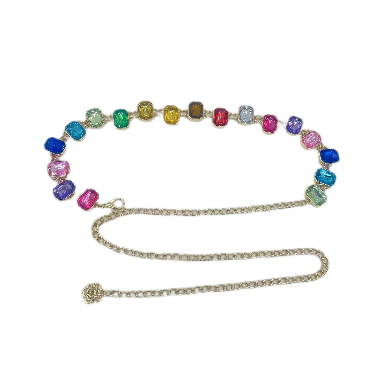 波西米亚民族风彩色水钻腰链配饰女欧美复古链条装饰连衣裙子腰带