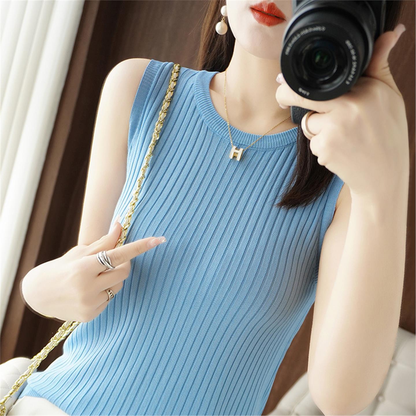 冰丝吊带背心女内搭白色黑色打底上衣小夏季新款圆领修身针织衫