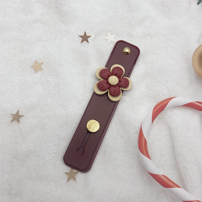 手机推拉式指环扣支架伸缩酒红花朵手机支架防摔滑粘贴式多功能女