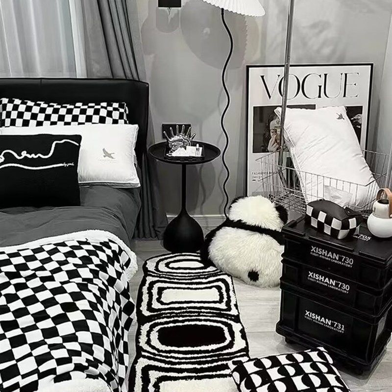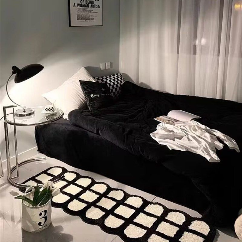 奶油风地毯黑白风级感卧室房间床边毯长条沙发茶几毯毛绒加厚垫