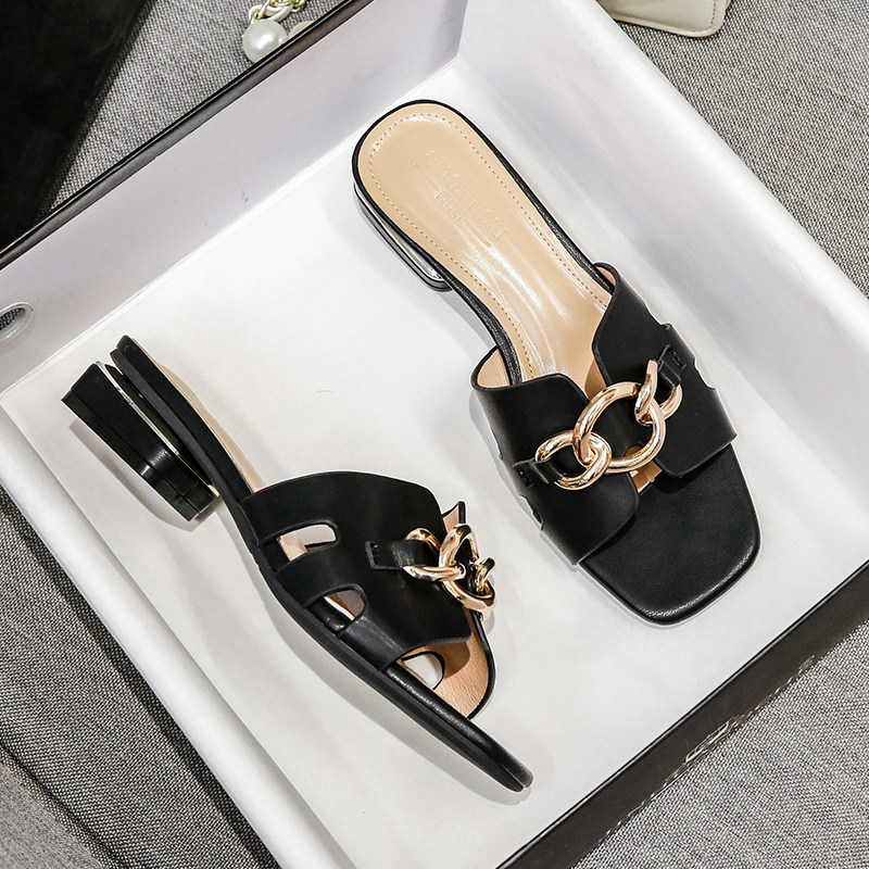 2021夏季新款外出拖鞋时尚百搭网红凉拖鞋女外穿粗跟大码41一43
