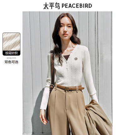 太平鸟曲珠纱假两件绞花线套针织衫女秋装新款撞色品质上衣