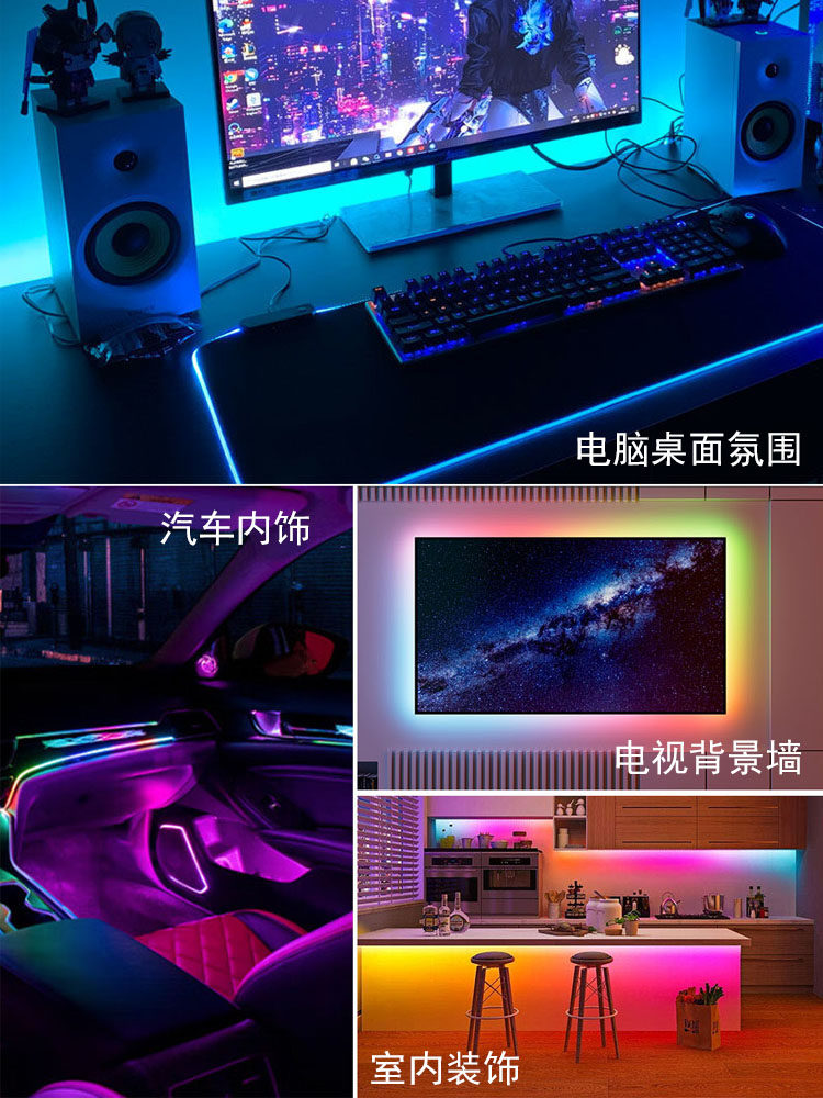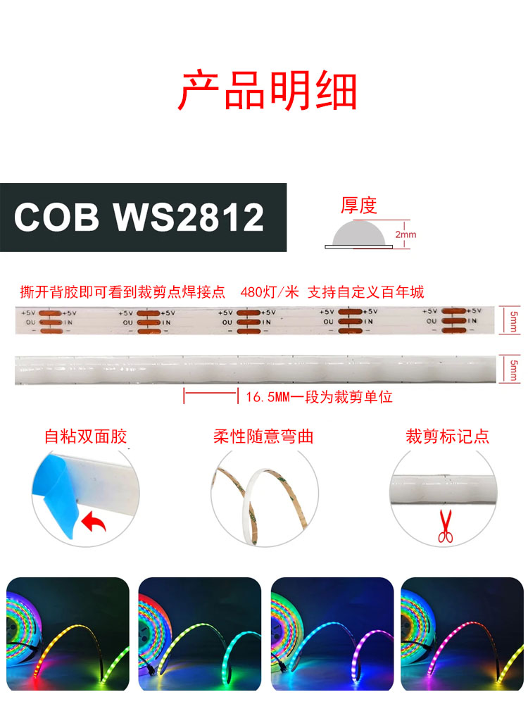 5MM窄版COB幻彩跑马流水灯带WS2812七彩rgb变色氛围灯条编程5/12V