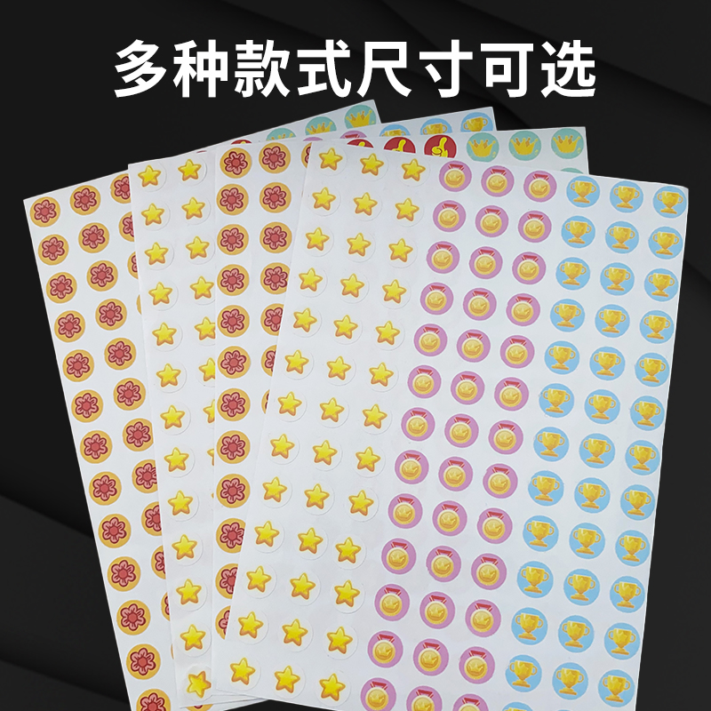 儿童奖励标签贴纸圆形小红花大拇指点赞五星标识贴可定制不干胶贴