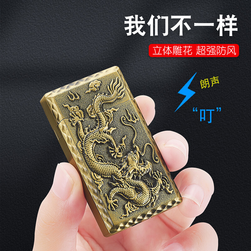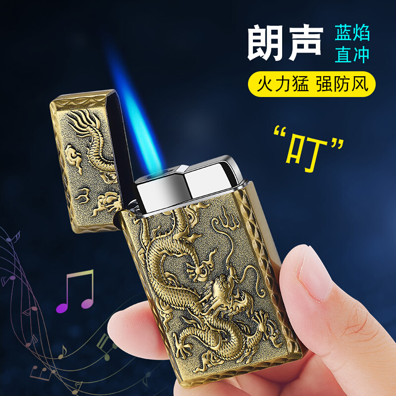 网红防风朗声钢音打火机充气创意个性高档直冲金属点火器男士定制