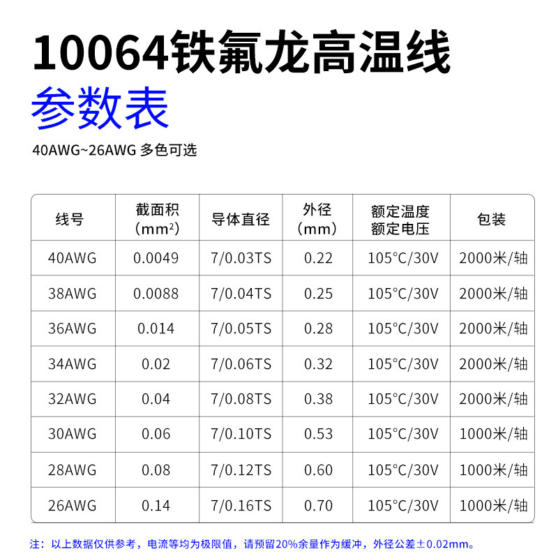 10064电子线超细铁氟龙镀锡线高温线电路板导线40 36 32 30 26AWG