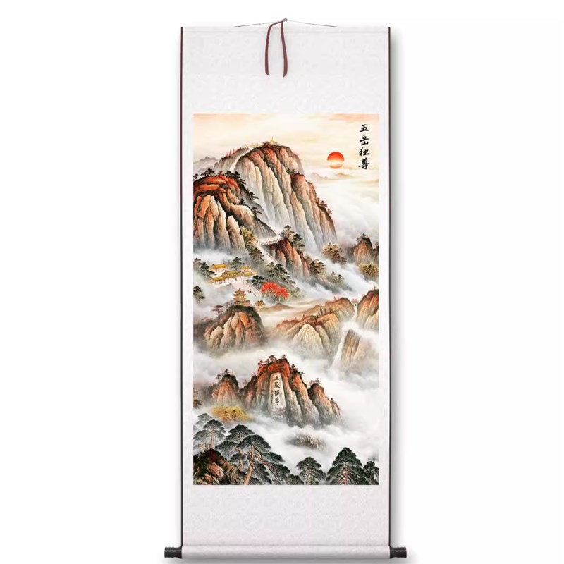 覆古鸿运当头泰山日n出流水生财山水长城茶室客厅玄关高清装饰挂