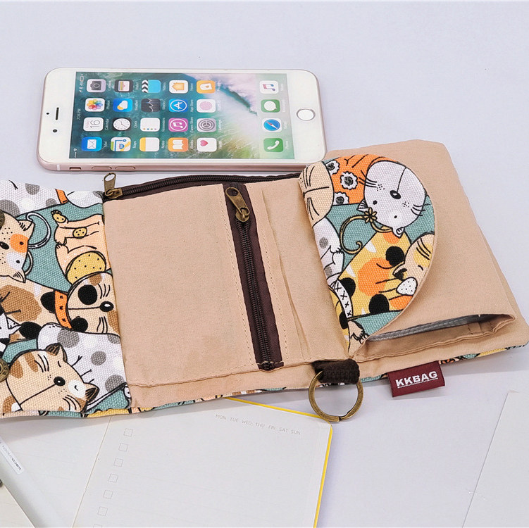可爱帆布钱包卡包一体包多功能