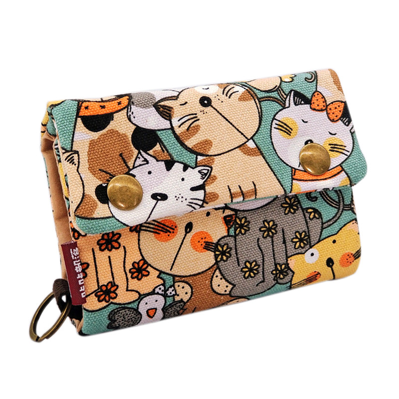 可爱帆布折叠小钱包 女款男款学生通用 布包便携零钱包卡包一体包