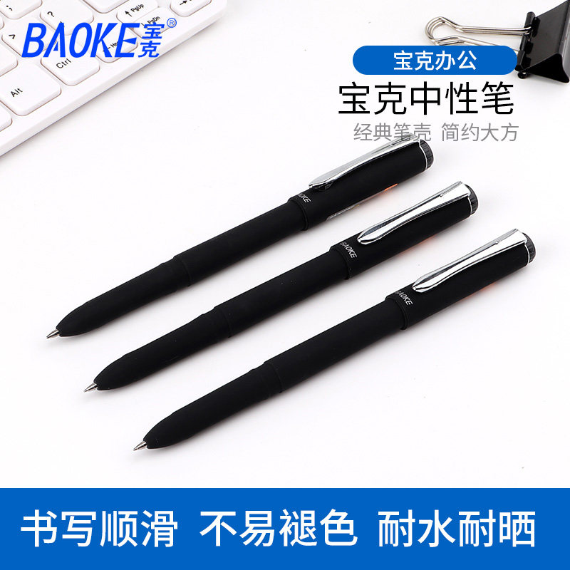 宝克PC2668中性笔0.5mm大容量签字笔磨砂笔杆商务办公用品金属笔夹水笔黑色中性笔学生考试专用0.7mm笔芯1mm