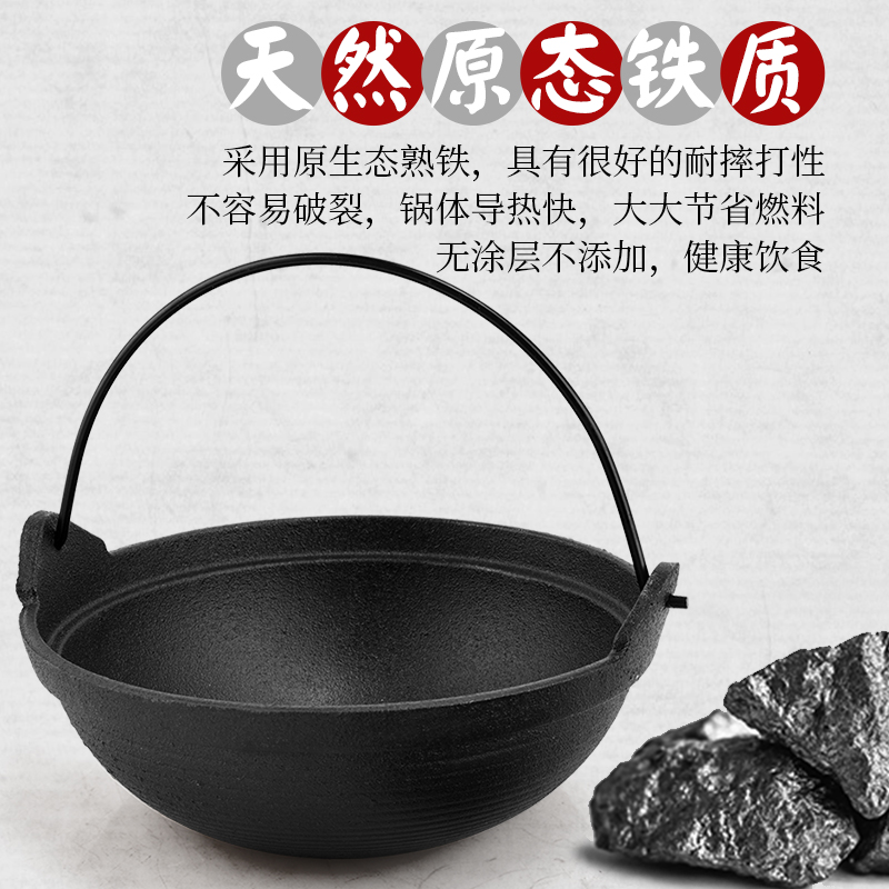 加厚铸铁小吊锅生铁铸锅日式铸铁锅汤锅炖锅烧锅电磁炉燃气通用