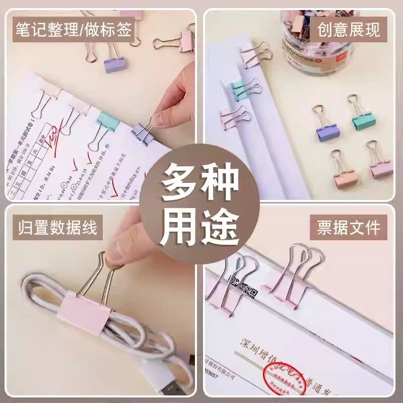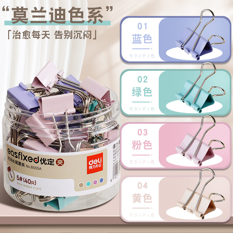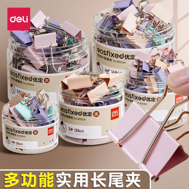 得力燕尾夹办公用品19mm 25mm彩色金属多功能试卷夹文具分类整理用创意试卷强力铁夹票据夹小号长尾票夹收纳