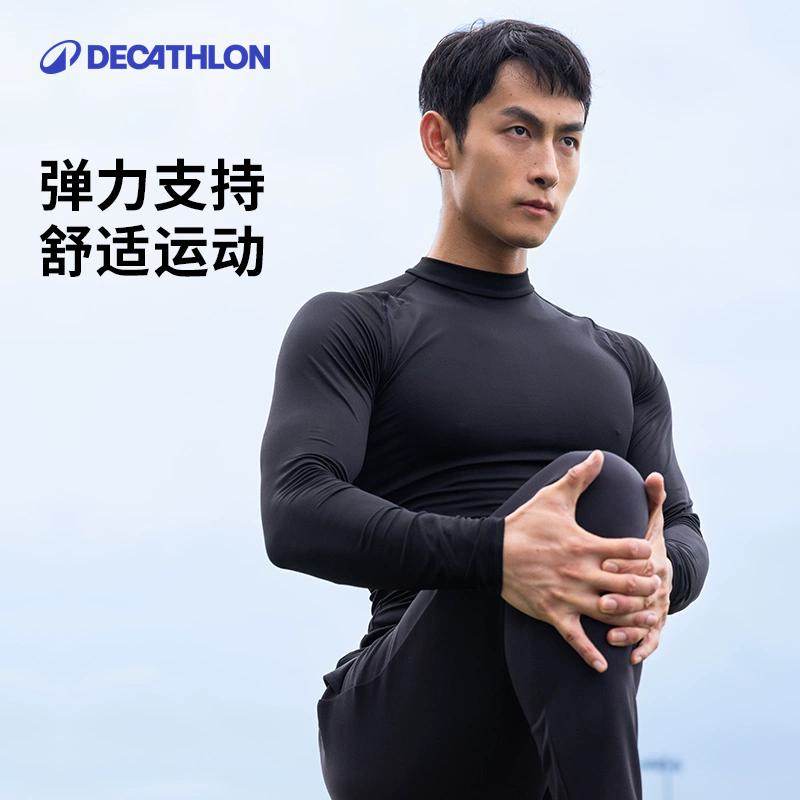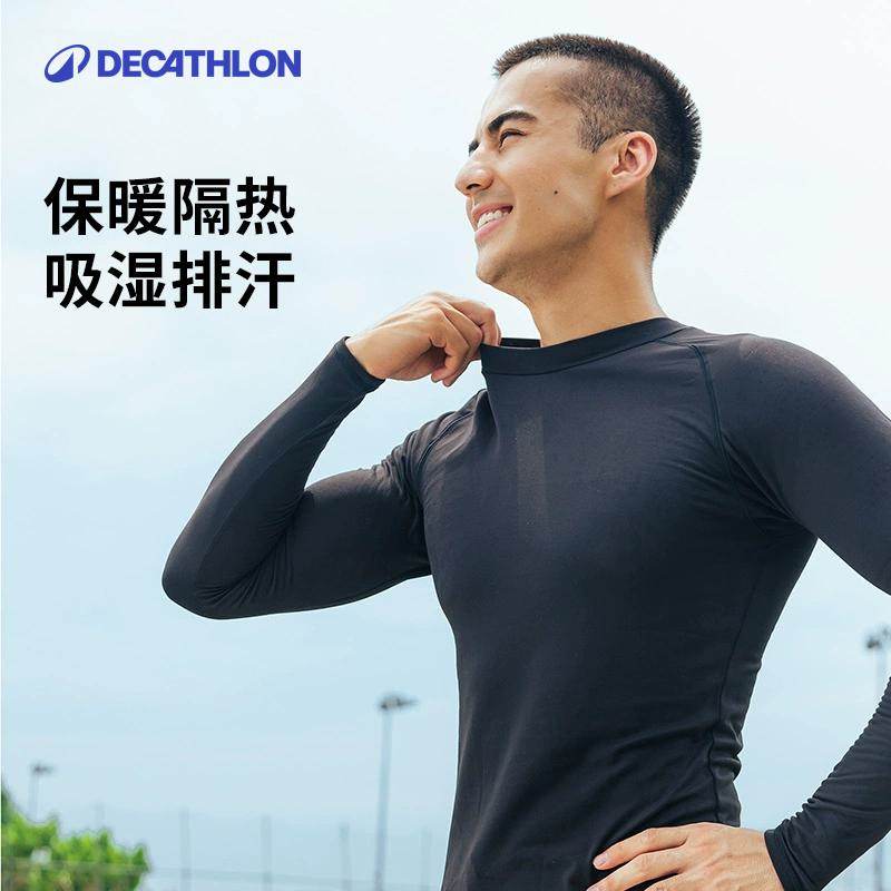 迪卡侬保暖运动服男健身滑雪功能内衣加绒长袖户外运动套装SAT2