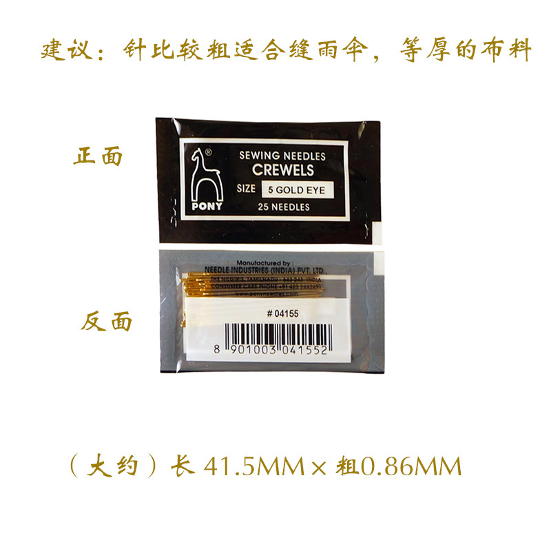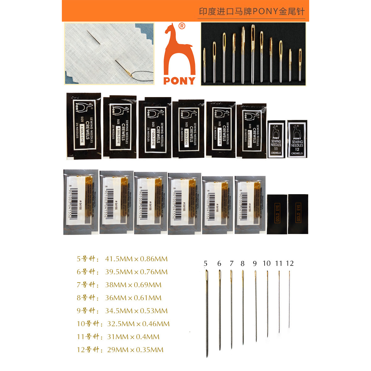 印度进口正品PONY马牌鹿牌金尾刺绣针手缝针绣花针 缝衣针 串珠针