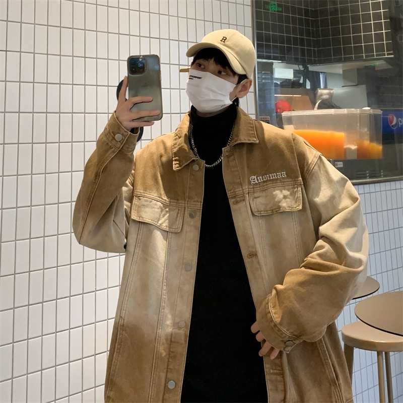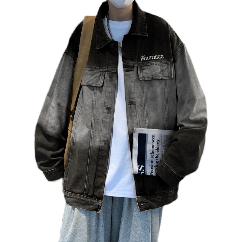 美式vibe复古渐变牛仔夹克男春秋季潮牌高街痞帅宽松休闲工装外套
