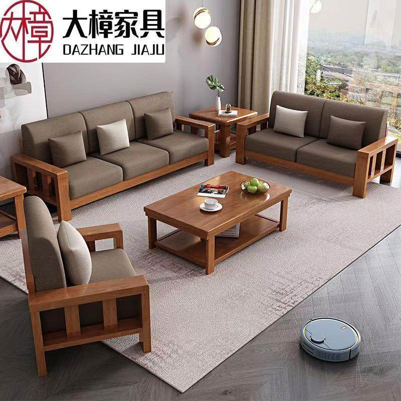 中式实木沙发组合出租房沙发现代简约小户型客厅贵妃转角布艺沙发