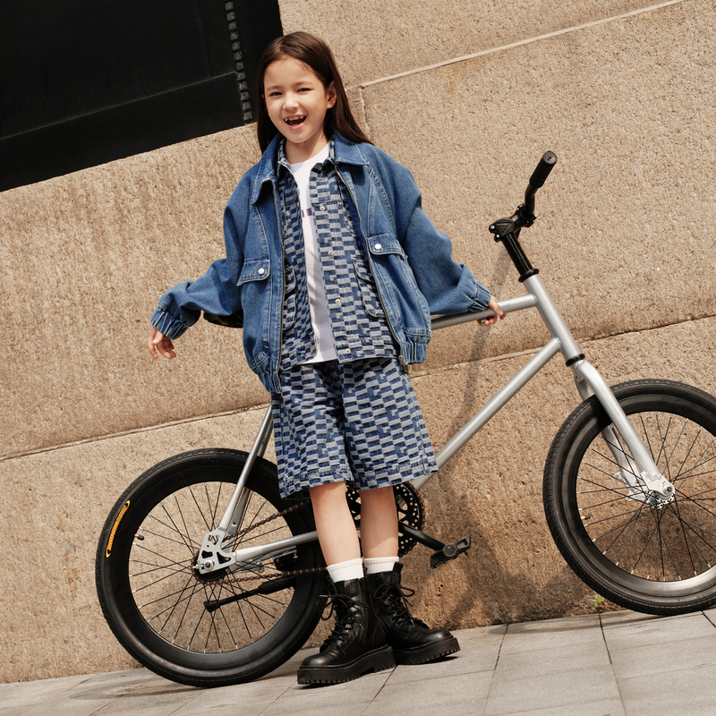 GXG童装春季儿童外套男女童春装牛仔翻领拉链简约休闲外套