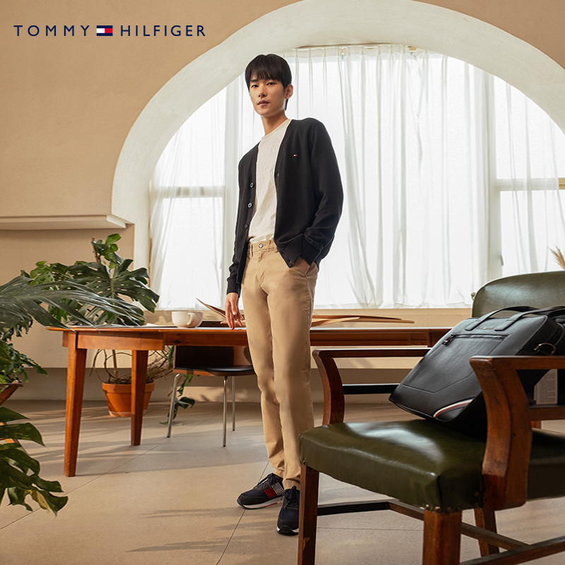 Tommy秋冬男装纯棉休闲简约小绣标纽扣V领合身针织开衫外套