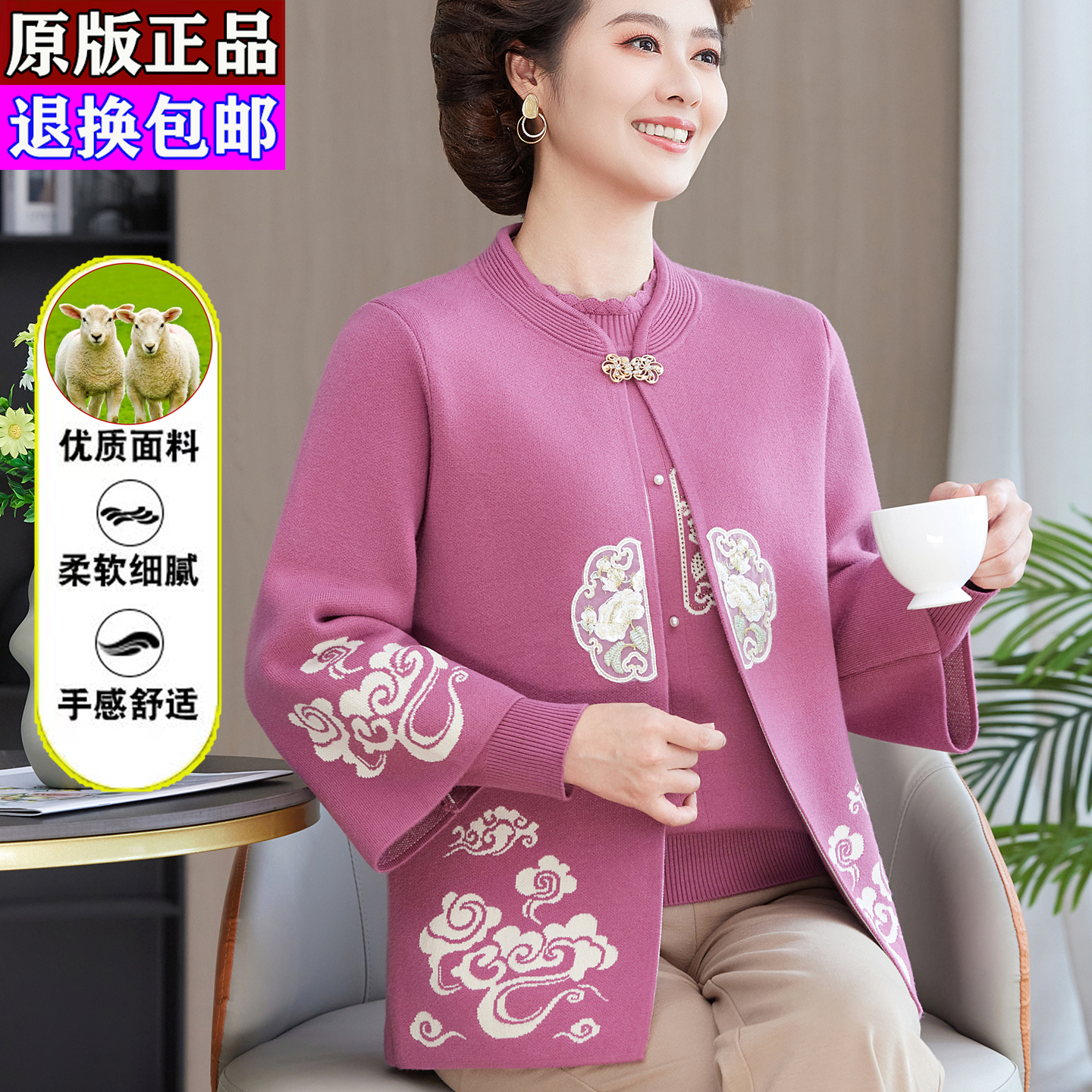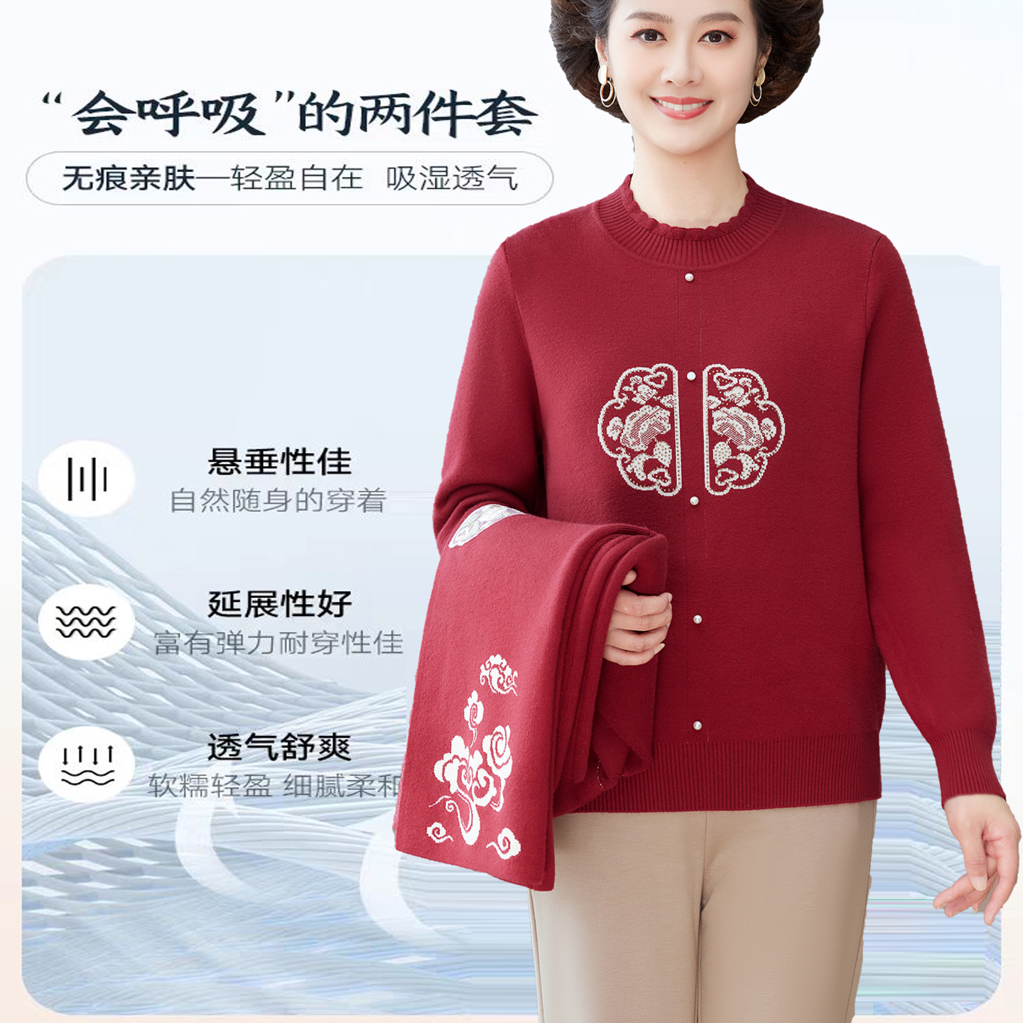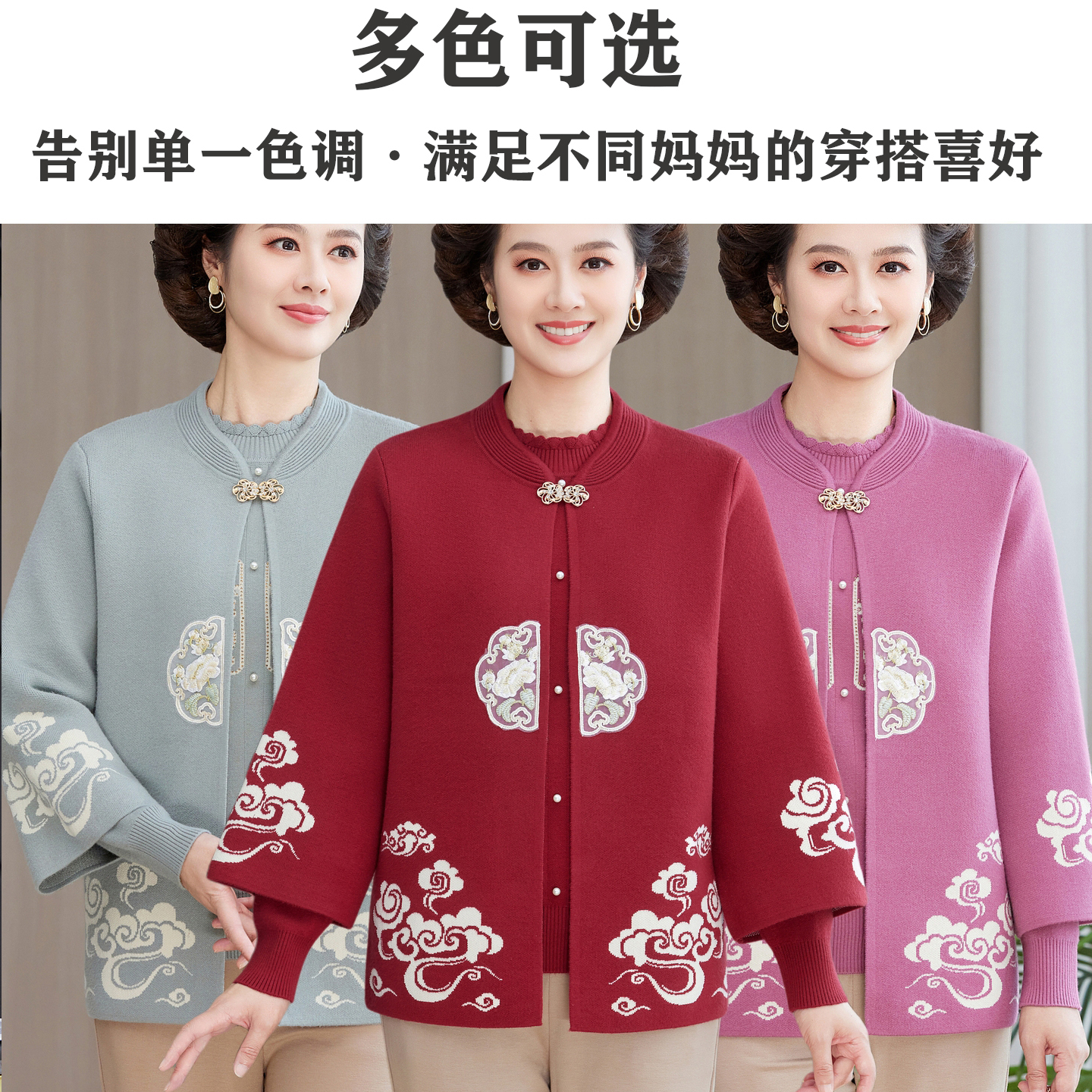 2025新中式妈妈秋装针织两件套中老年女秋冬国风毛衣洋气开衫外套