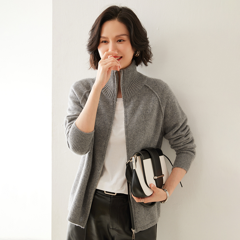 气质惊艳~加厚baby小山羊绒针织开衫女高领双拉链宽松双拉链外套