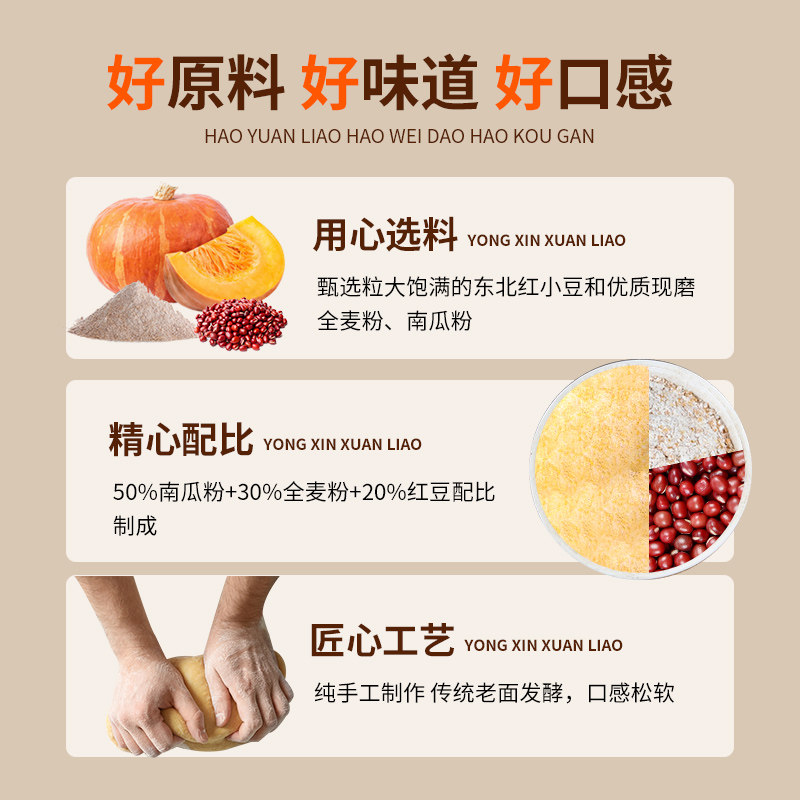 全麦南瓜红豆卷早餐半成品花卷豆沙包杂粮馒头手工窝窝头粗粮主食