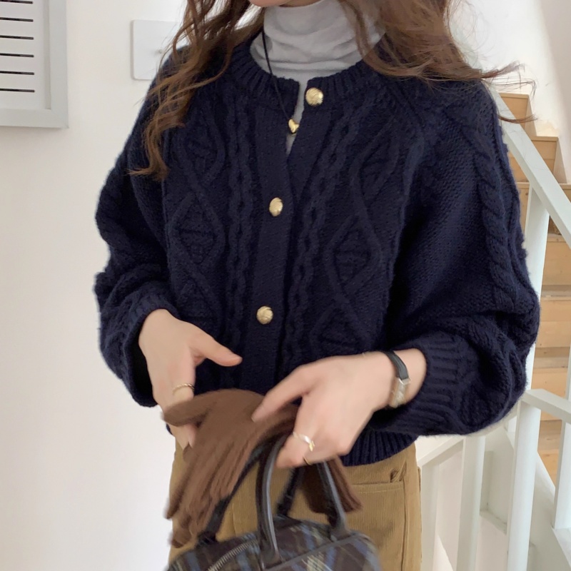 复古麻花100%纯羊毛开衫女2025秋冬新款宽松短款毛衣针织羊绒外套