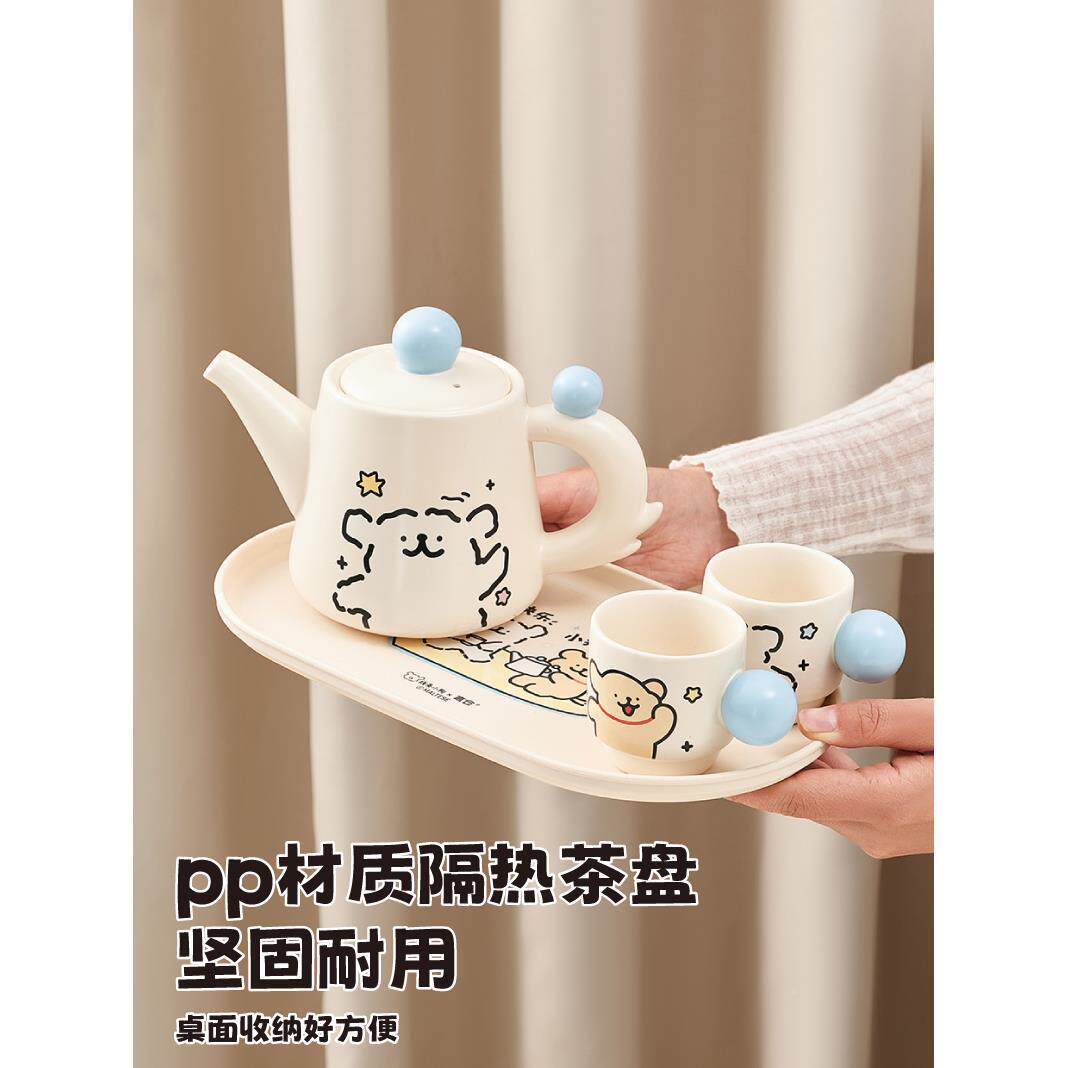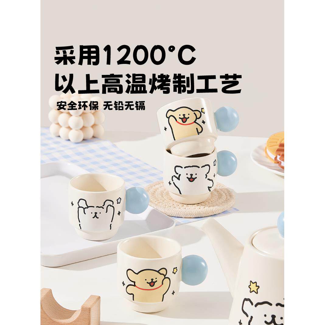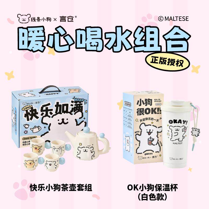 温言仓线条小生狗茶壶组礼盒家用实用养泡茶套耐高197陶瓷茶杯茶