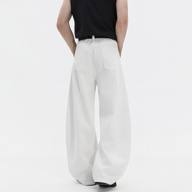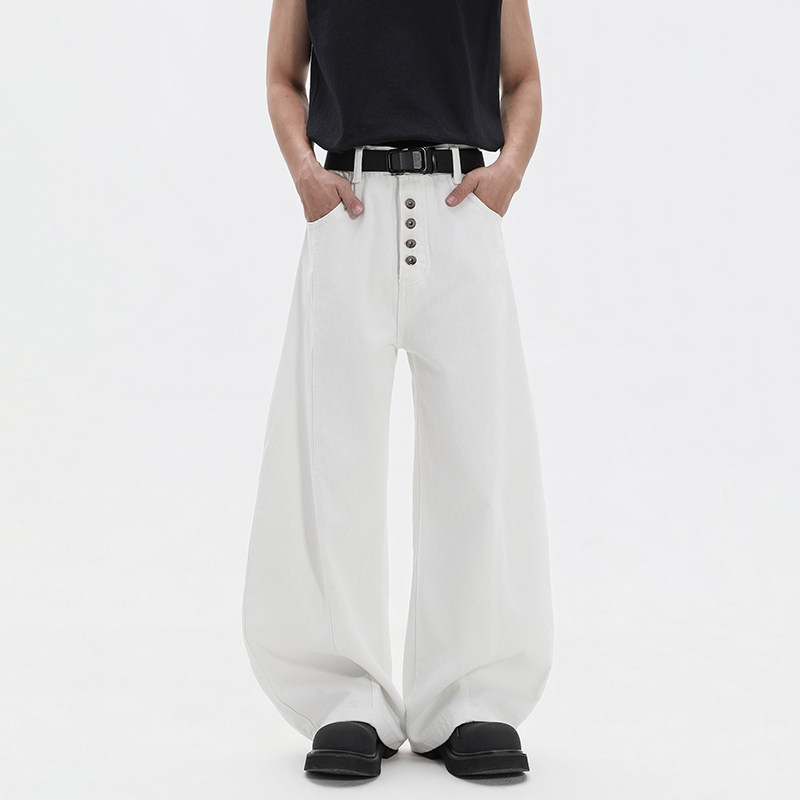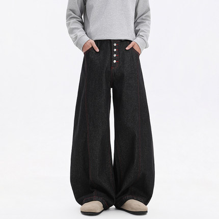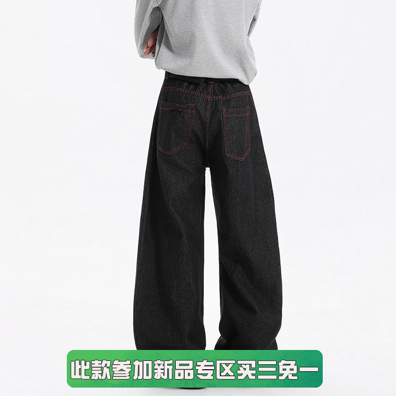 BOYUE帛跃美式丹宁不掉色原牛排扣弯刀牛仔裤青少年休闲阔腿裤男