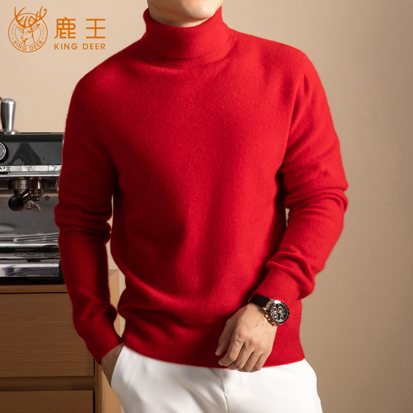 鹿王羊绒衫男款100纯羊绒秋冬季保暖高领宽松羊毛衫针织打底衫男