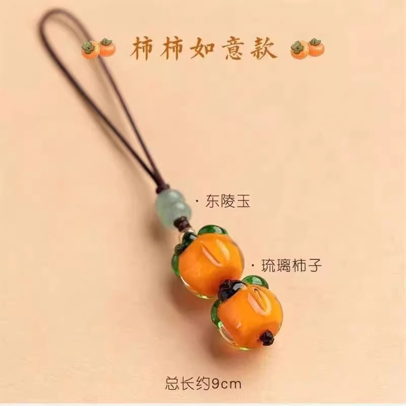 柿柿如意琉璃柿子汽车钥匙扣挂件精致男女手机链创意挂饰吊坠挂绳