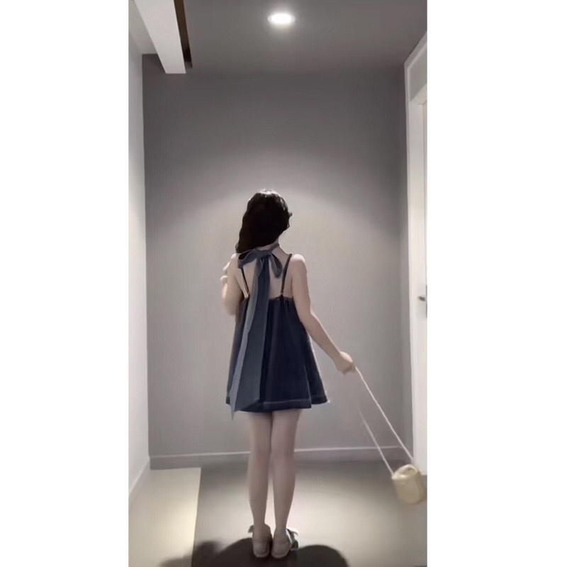shui-半夏微醺-ins气质牛仔蝴蝶结系带复古性感法式小众连衣裙