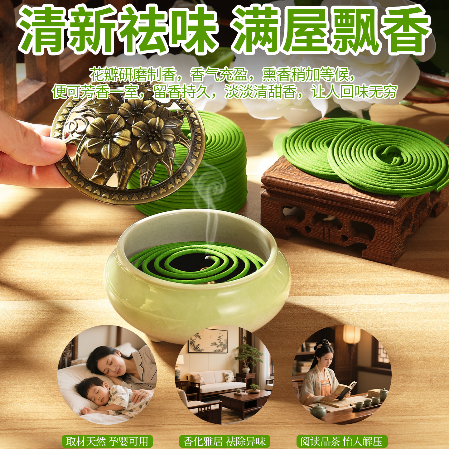 碌柚叶香薰家用室内盘香卧室内檀香持久留香清新空气房间高级淡香