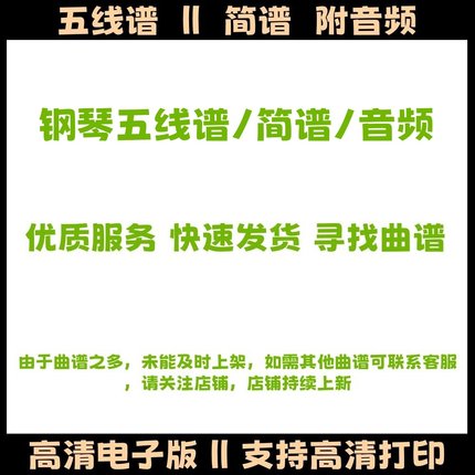歌曲钢琴谱五线谱双手简谱电子版PDF高清乐谱演奏曲谱示范音频