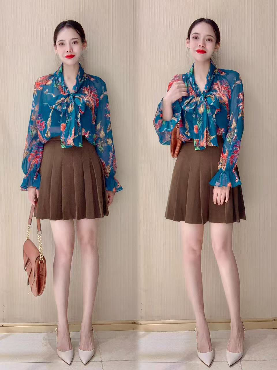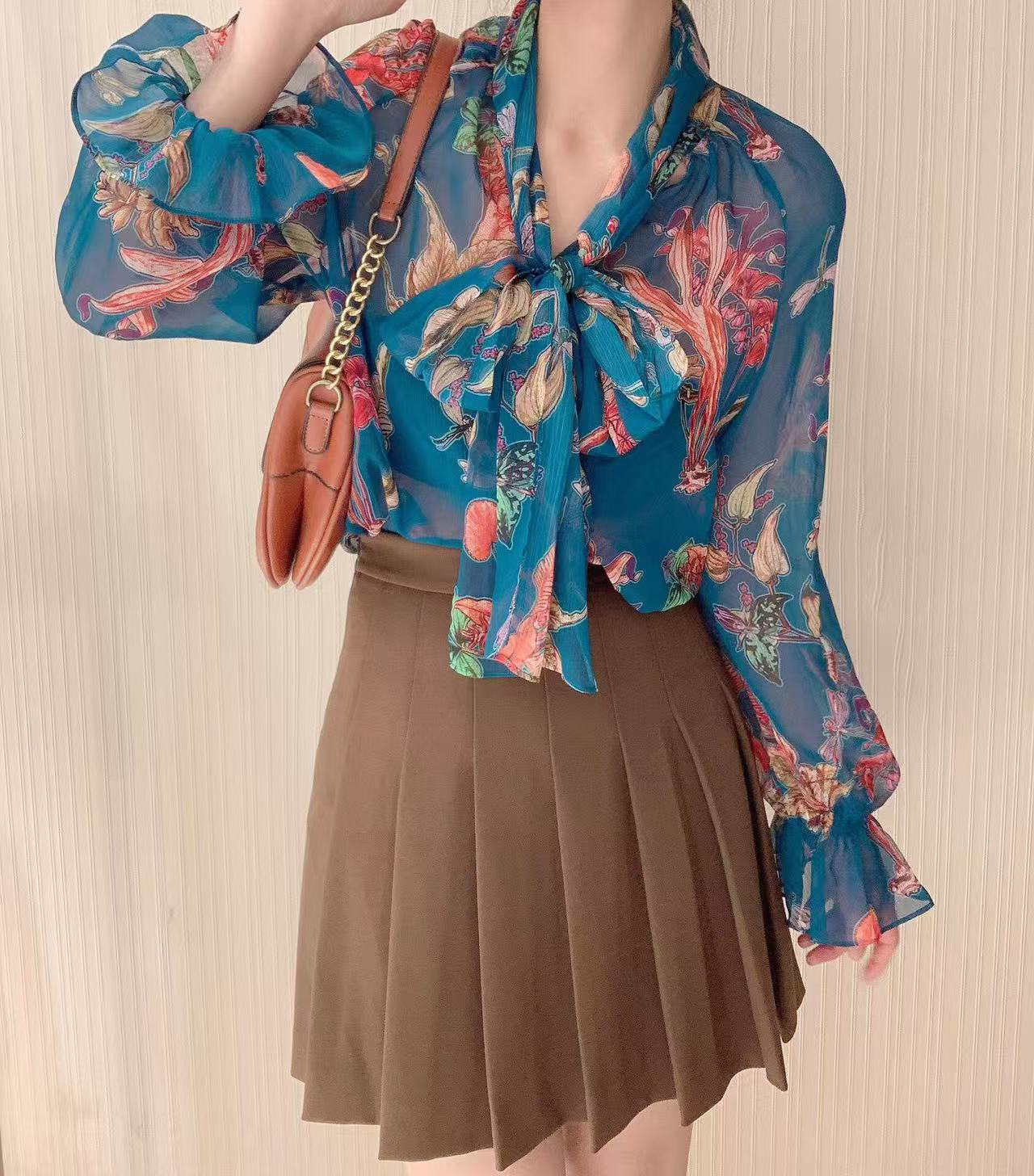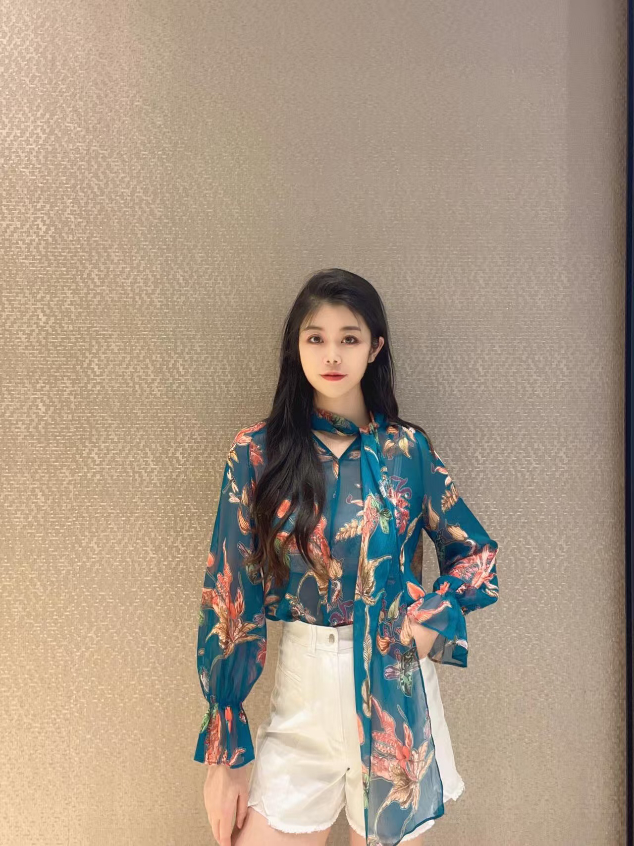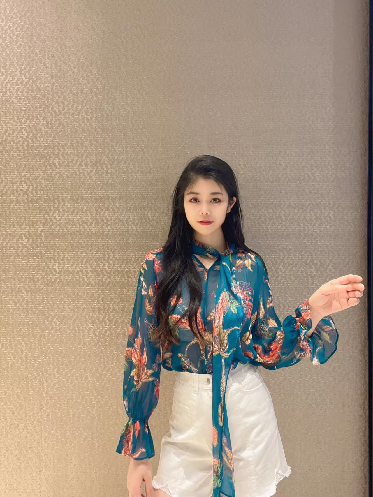 1300580哥家专柜正品春夏新款印花长袖宽松上衣通勤衬衫女衬衣